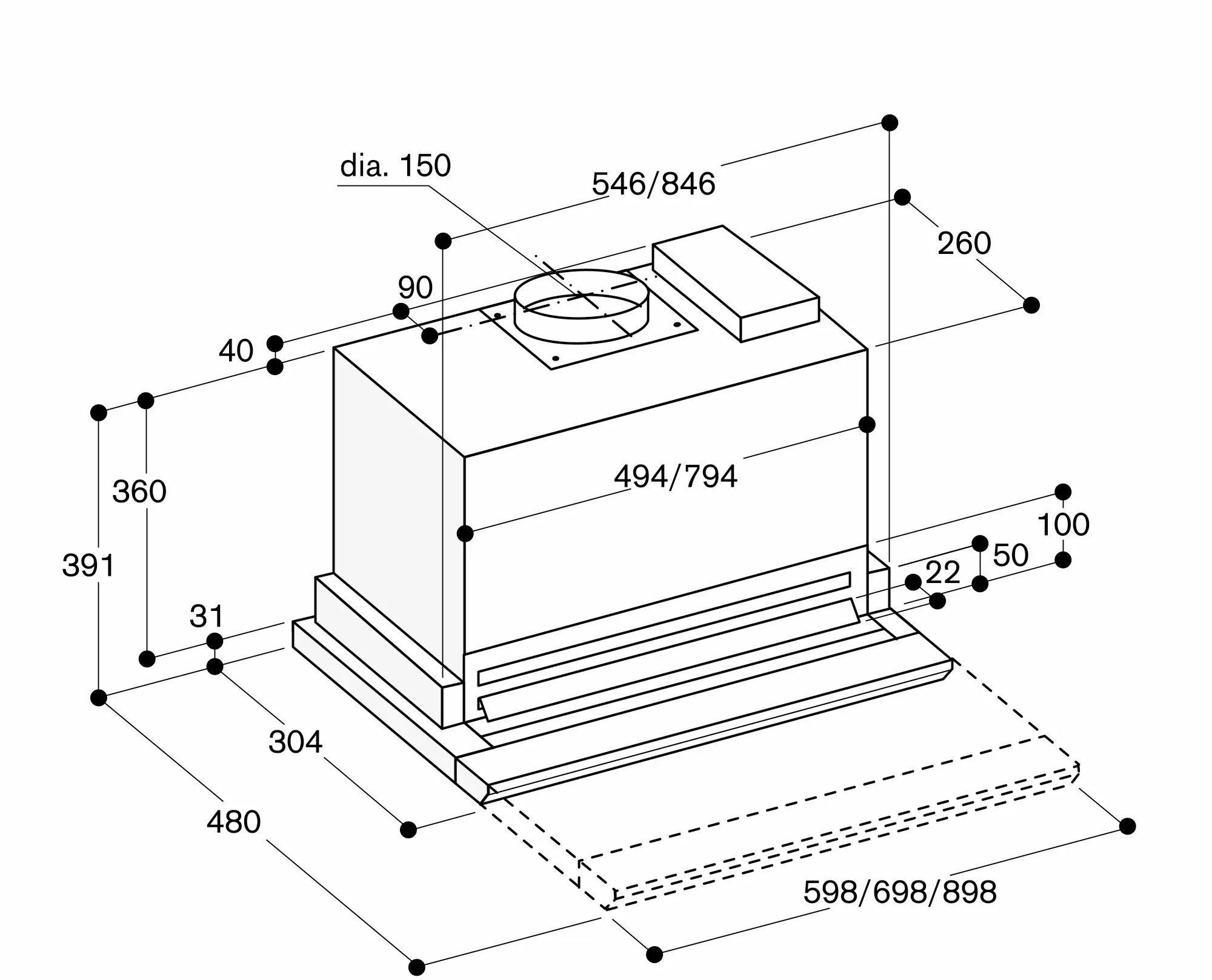 Exhaust mode DIN EN 61591 : 680 m³ / h