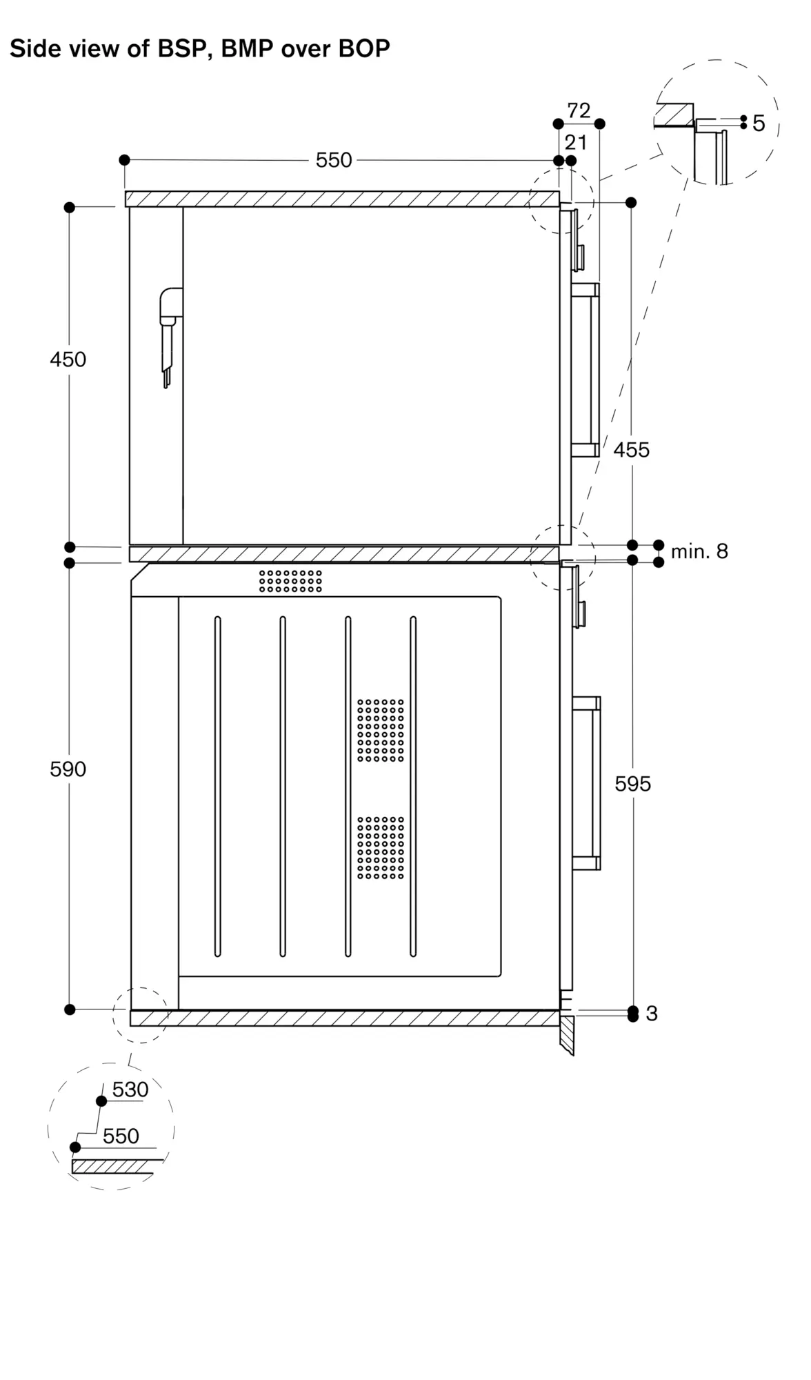 Necessary lateral gap between appliance door and furniture panel of min. 5 mm.