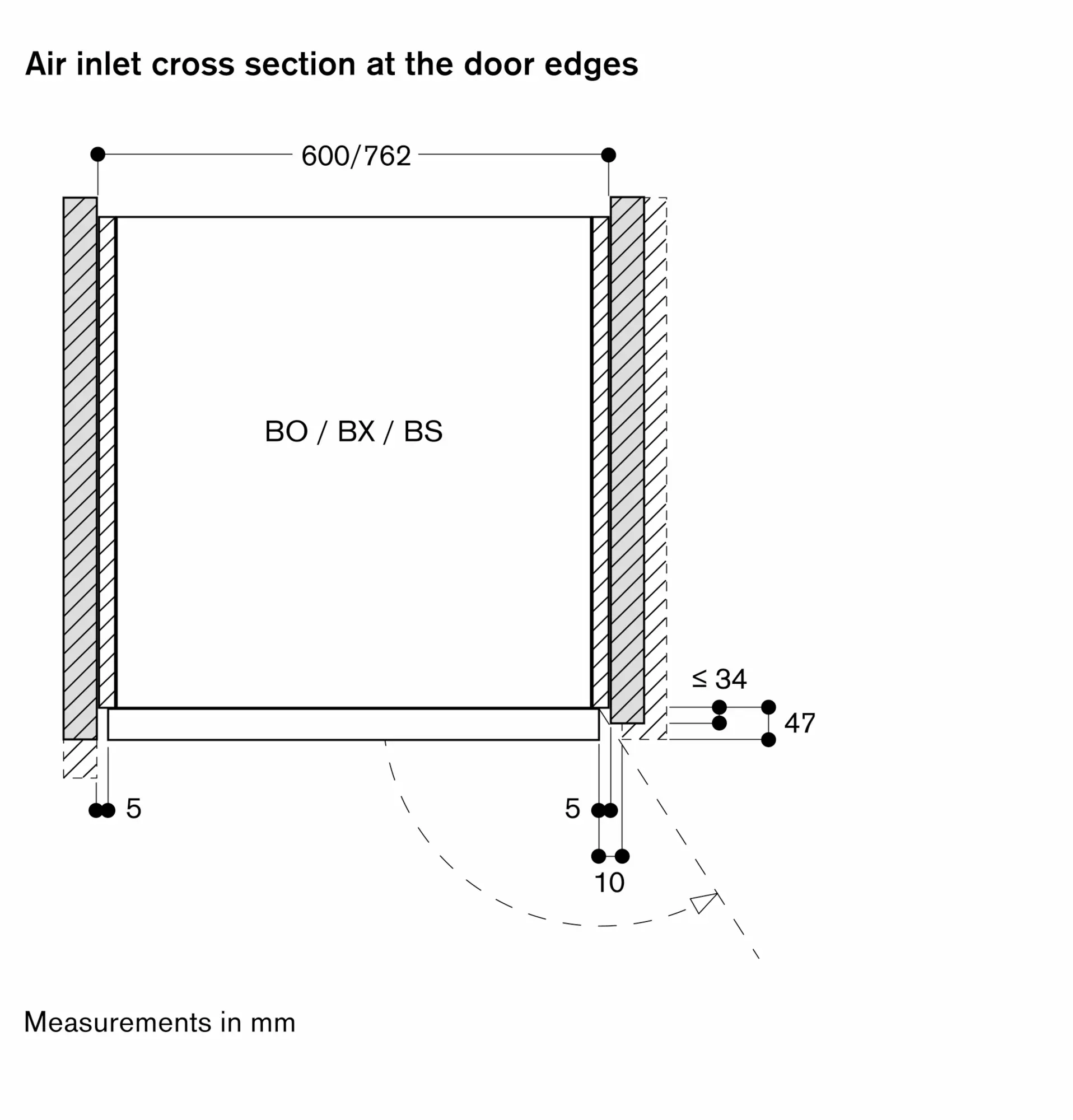 The façade of the appliance extends 47 mm from the furniture cavity.
