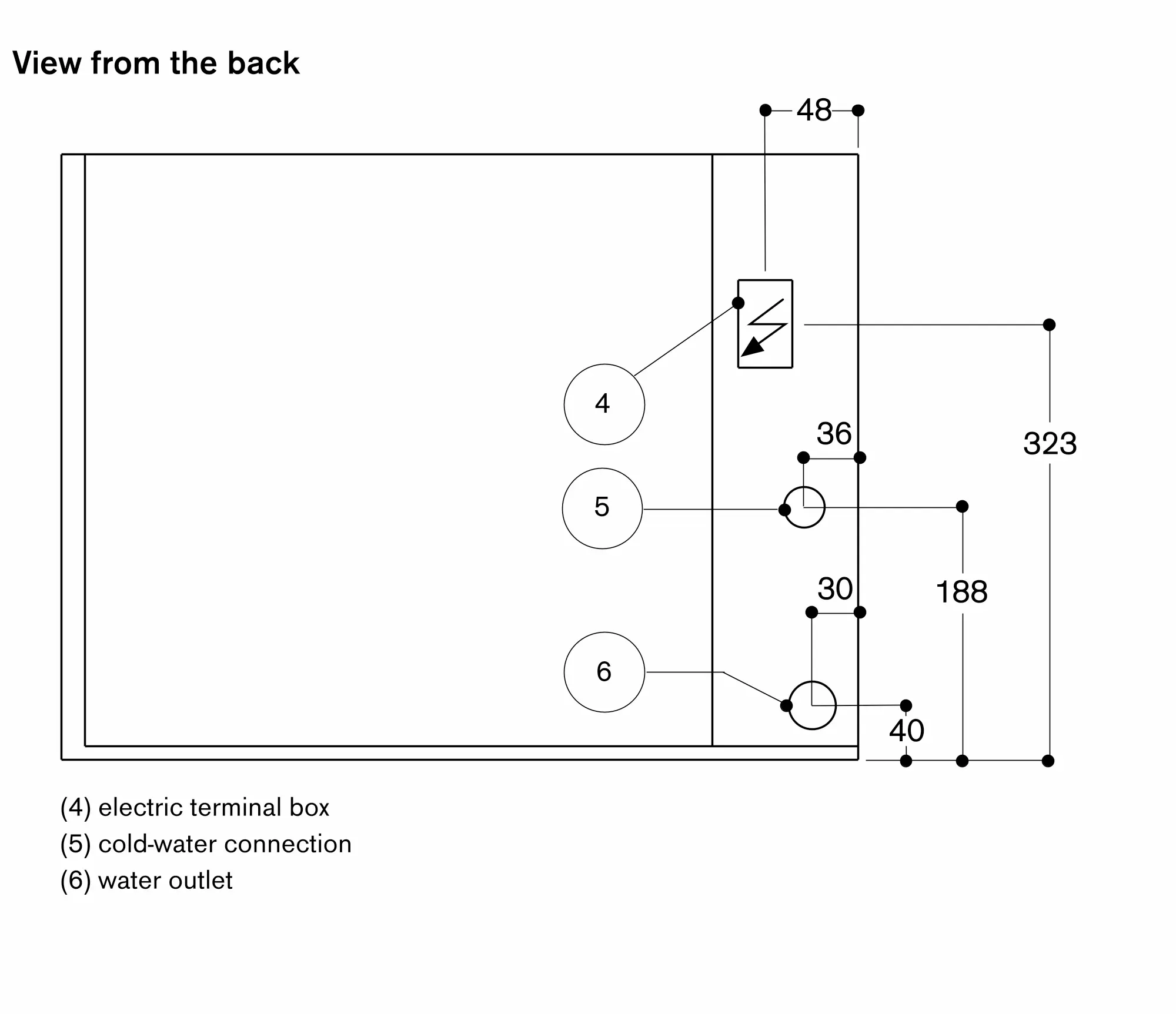 The water connection (1) for the inlet hose must always be accessible and not located directly behind the appliance.