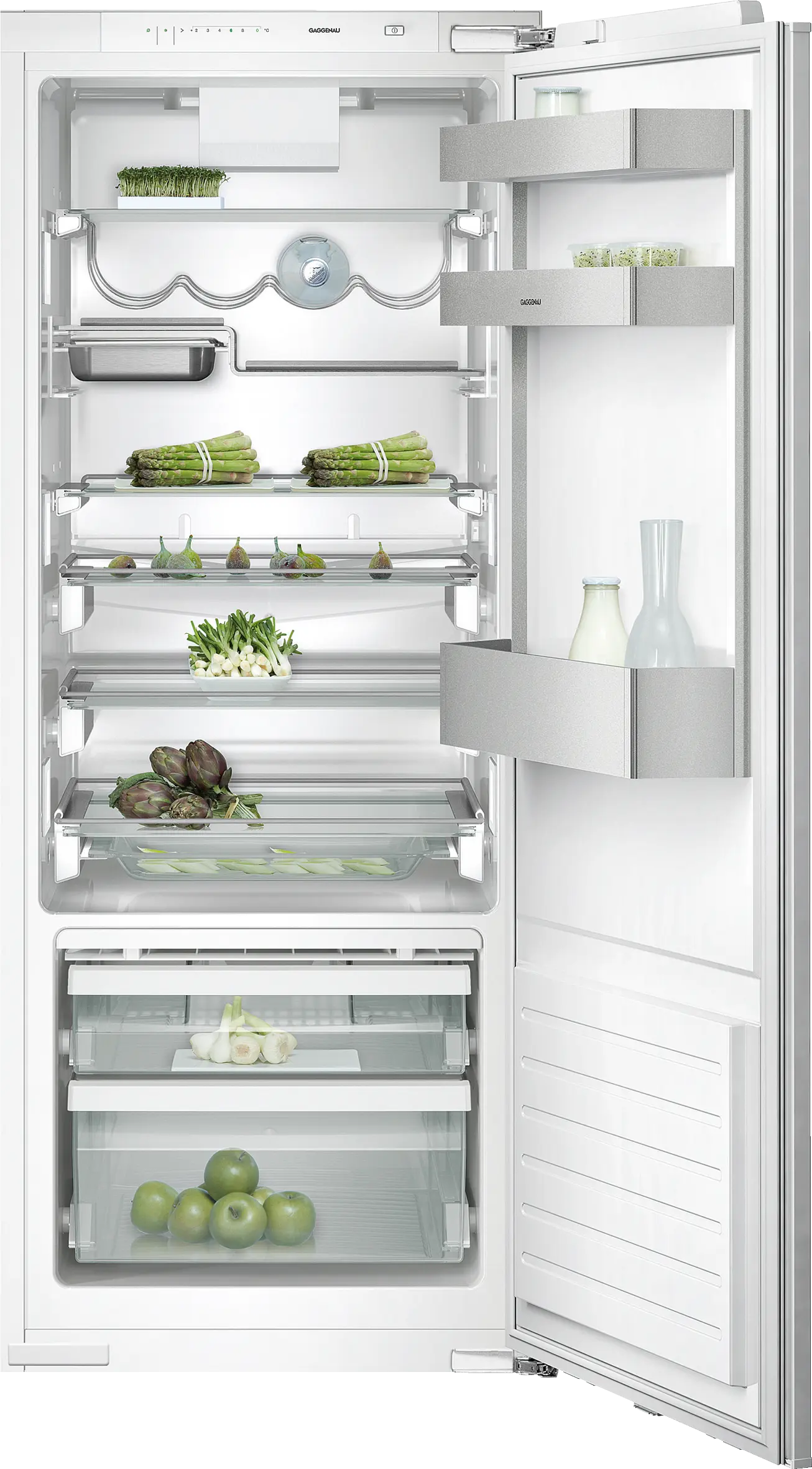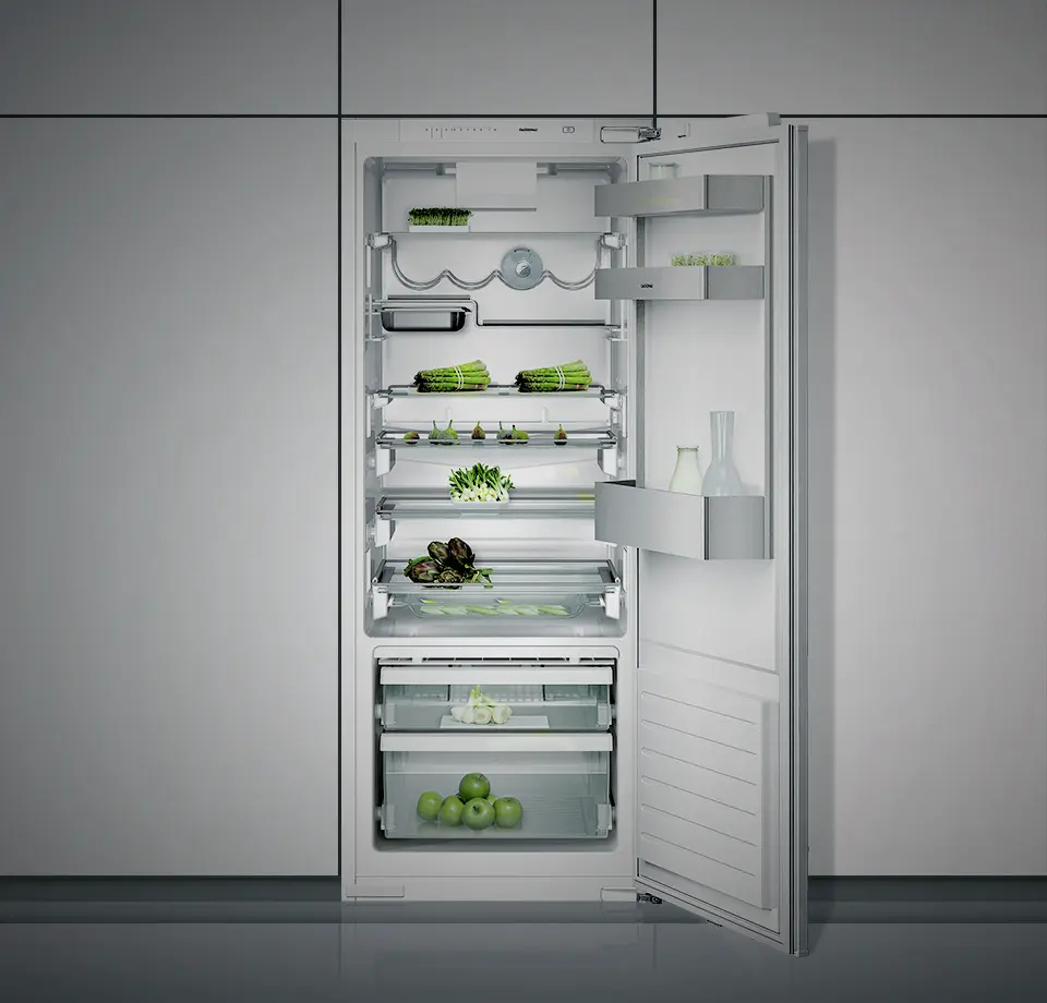 Unique usage concept: - Maximum usage of interior: stepped shelf, full depth shelves as well as integrated fixtures for various containers - Easy access: fully extendable shelves and drawers - Optimal overview: intelligent lighting concept, use of glass and transparent materials - Efficient preparation, cooking and storage with Gaggenau appliances: integration of Gastronorm inserts