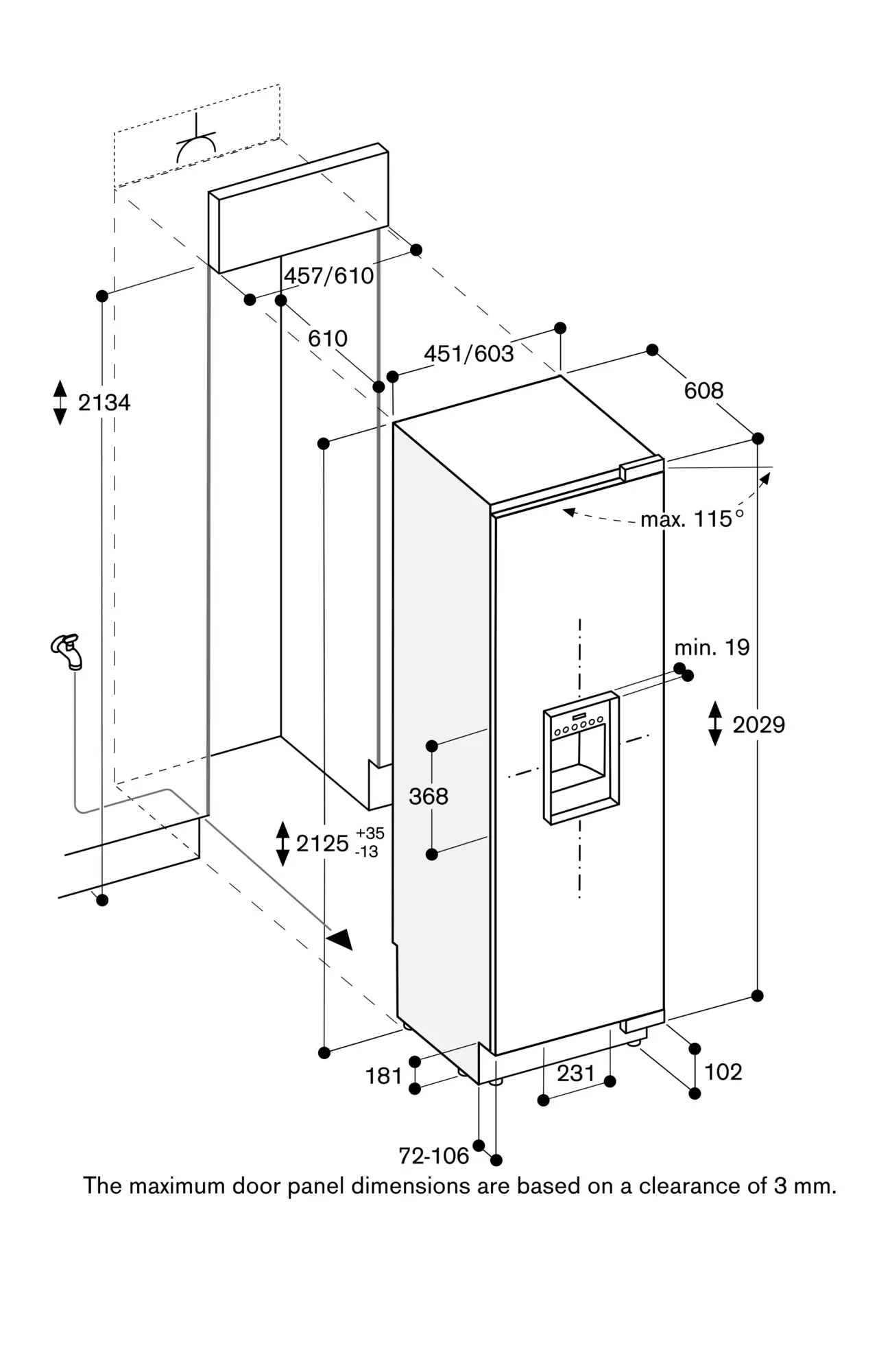 Shut-off valve for water connection must be planned next to the appliance and always be accessible.