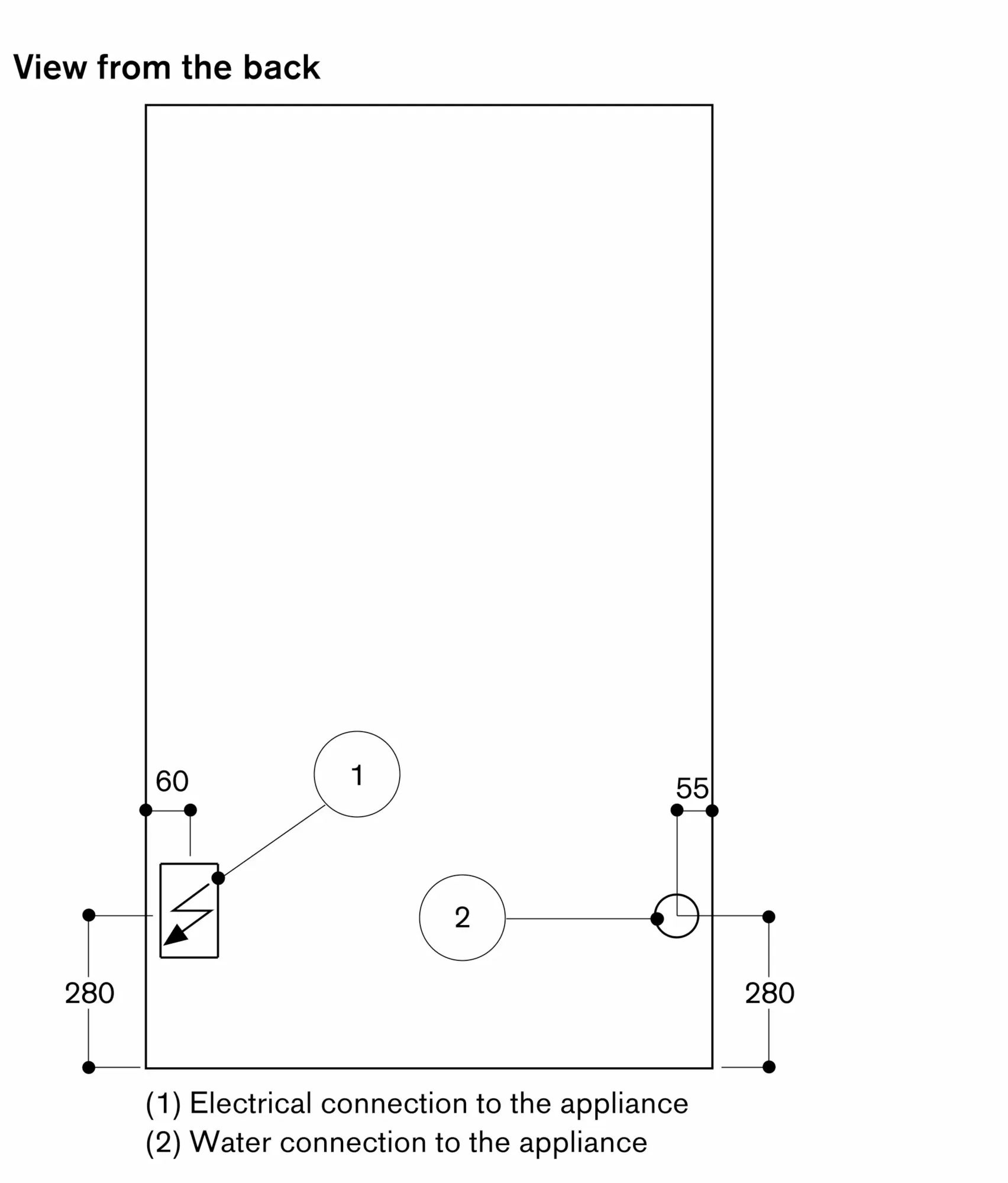 The socket and shut-off valve must be planned next to the appliance.