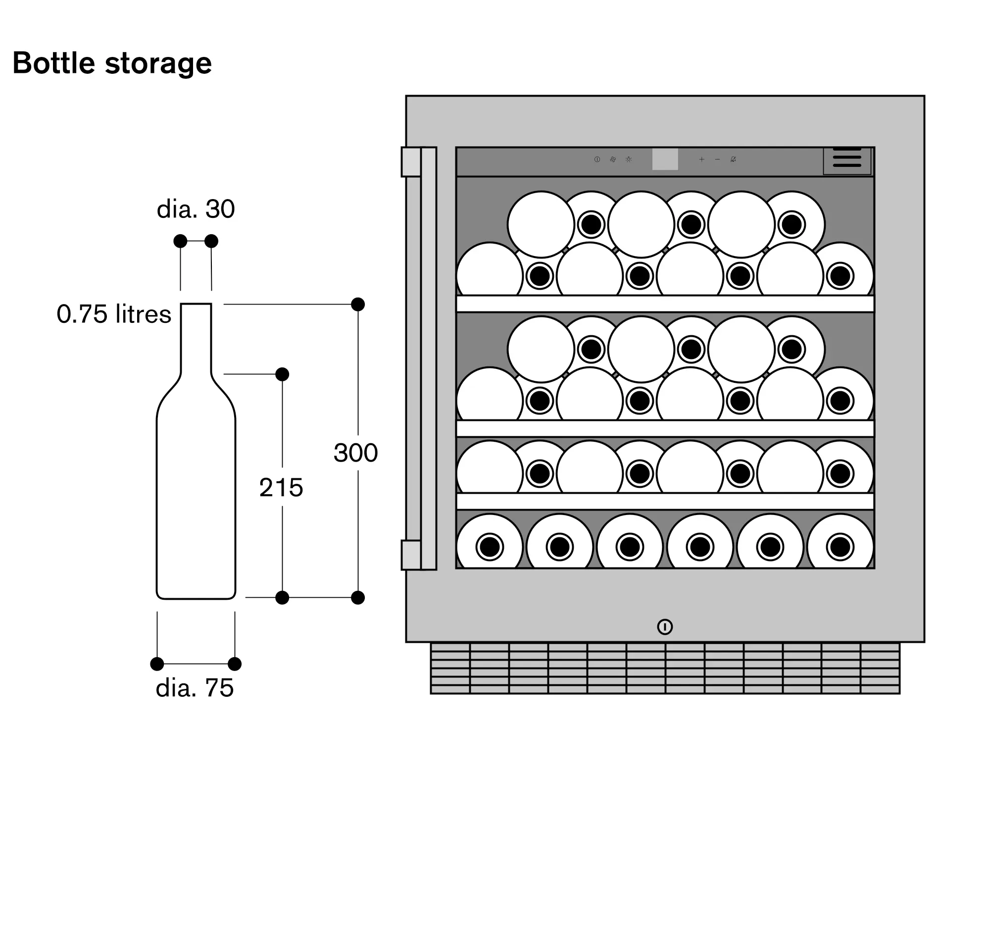 Capacity 42 bottles (based on 0.75/l standard bottles).