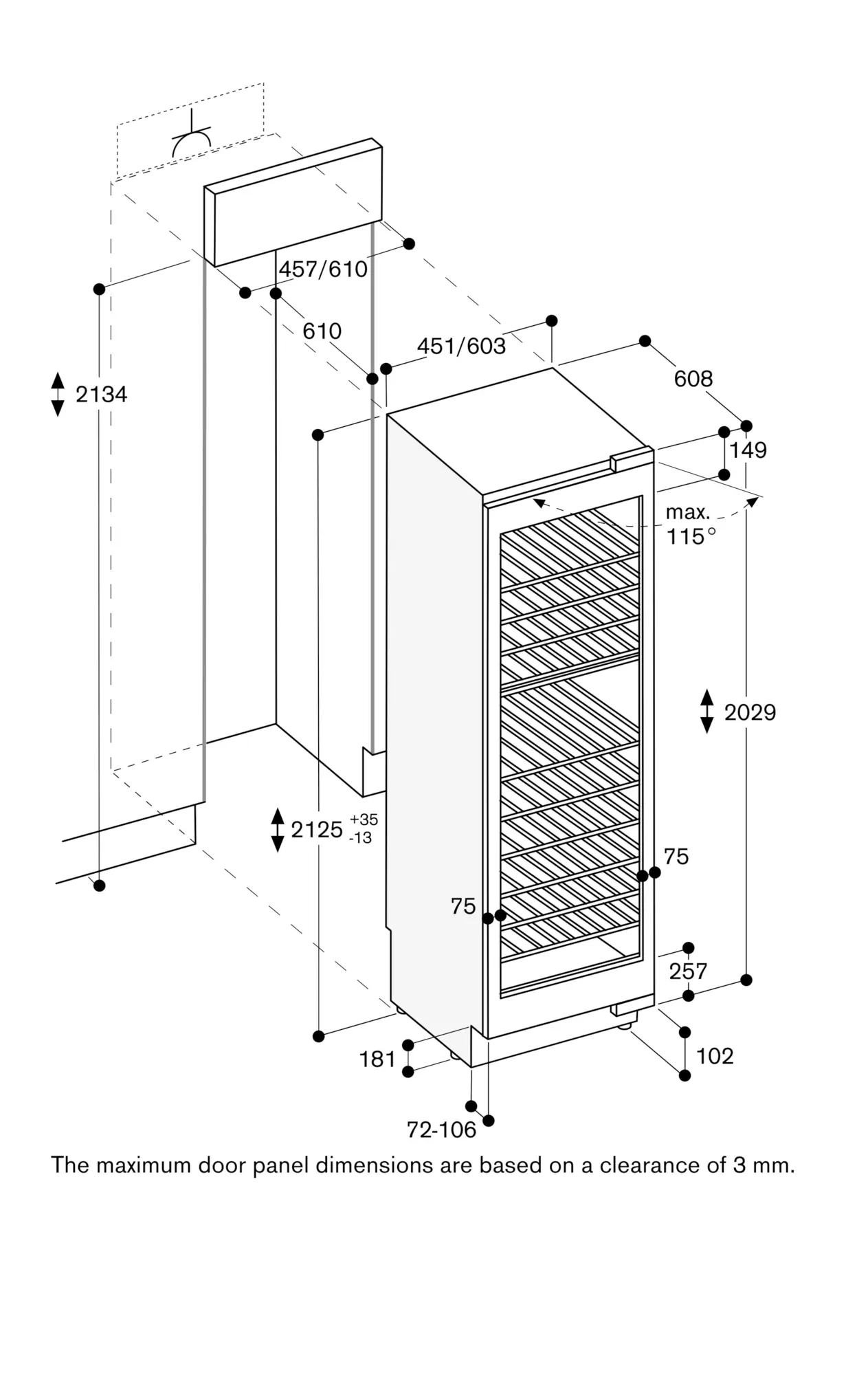 Capacity 70 bottles (based on 0.75/l standard bottles).