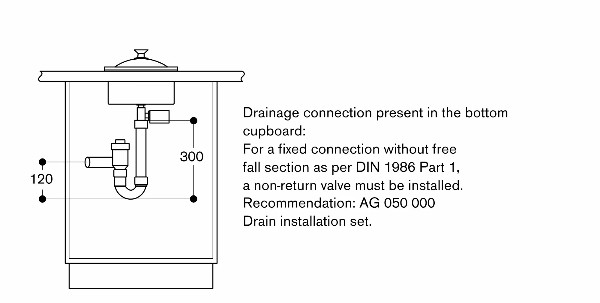 The bearing capacity and stability, in the case of thin worktops in particular, must be supported using suitable substructures. Take into account the appliance weight and additional loads.