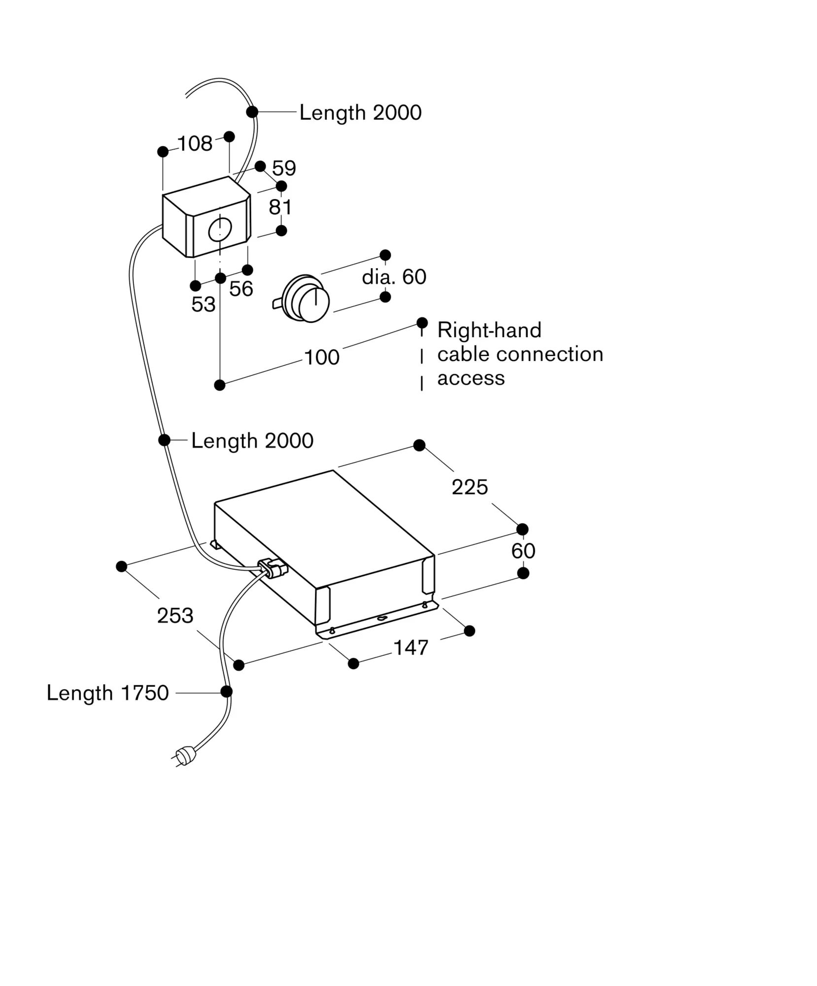 Connecting cable downdraft ventilation 1.8 m, pluggable.