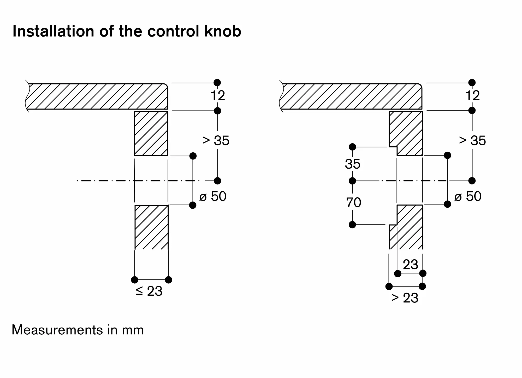 No other cut-outs permitted in the same worktop piece.