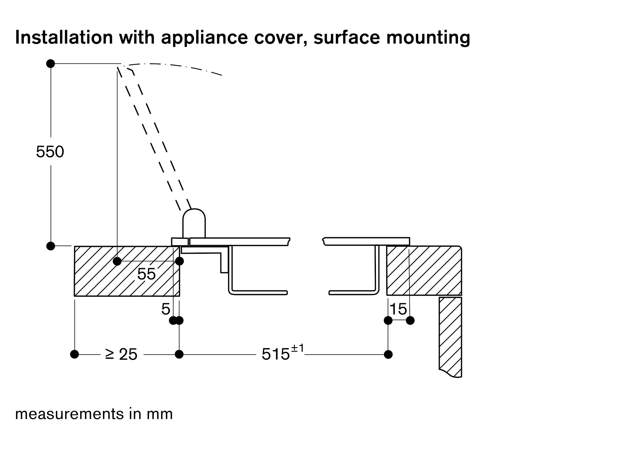 If installing several appliances in individual cut-outs allow for a division bar of minimum 50 mm between the individual cut-outs.