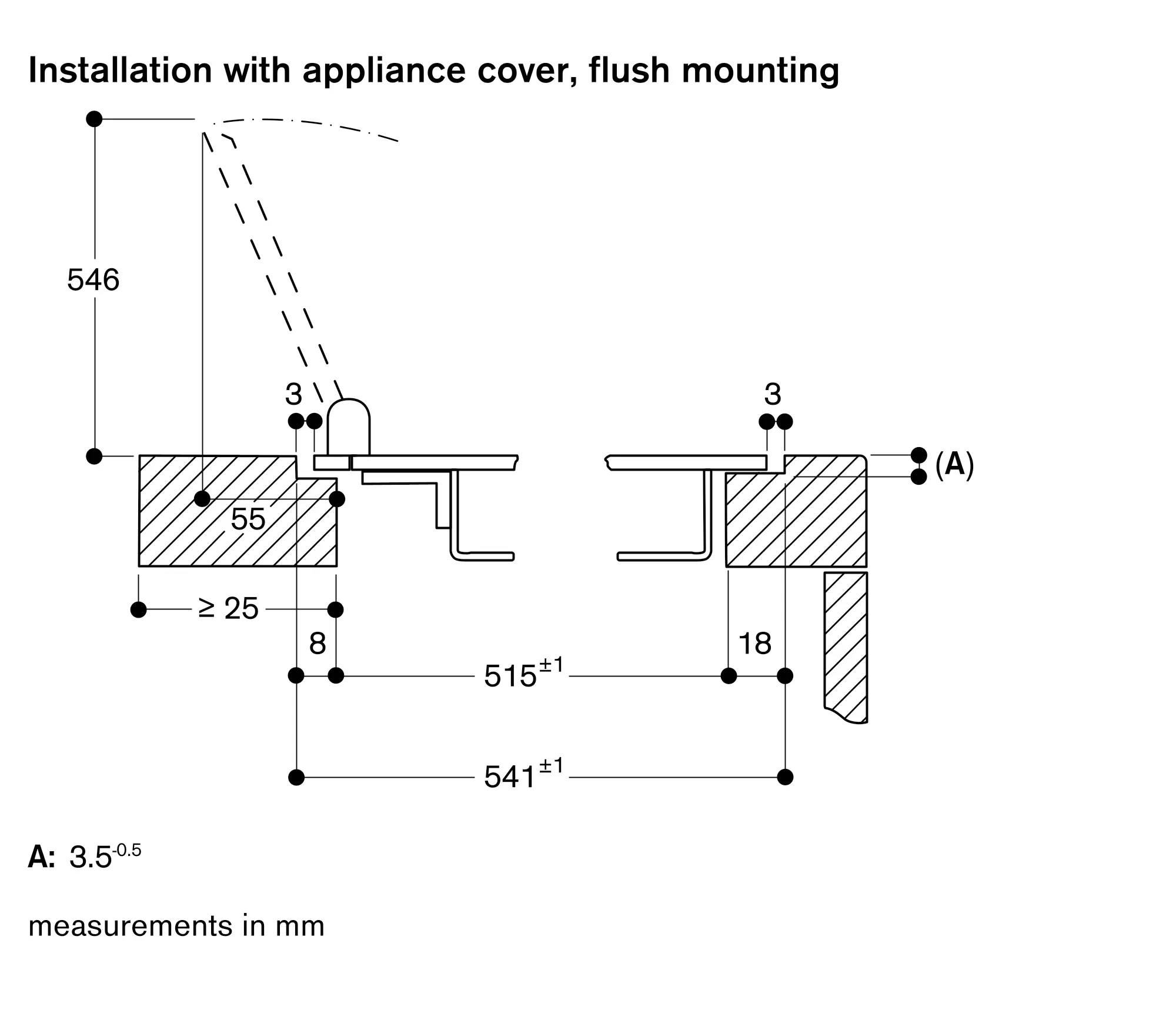 The bearing capacity and stability, in the case of thin worktops in particular, must be supported using suitable substructures. Take into account the appliance weight and additional loads.