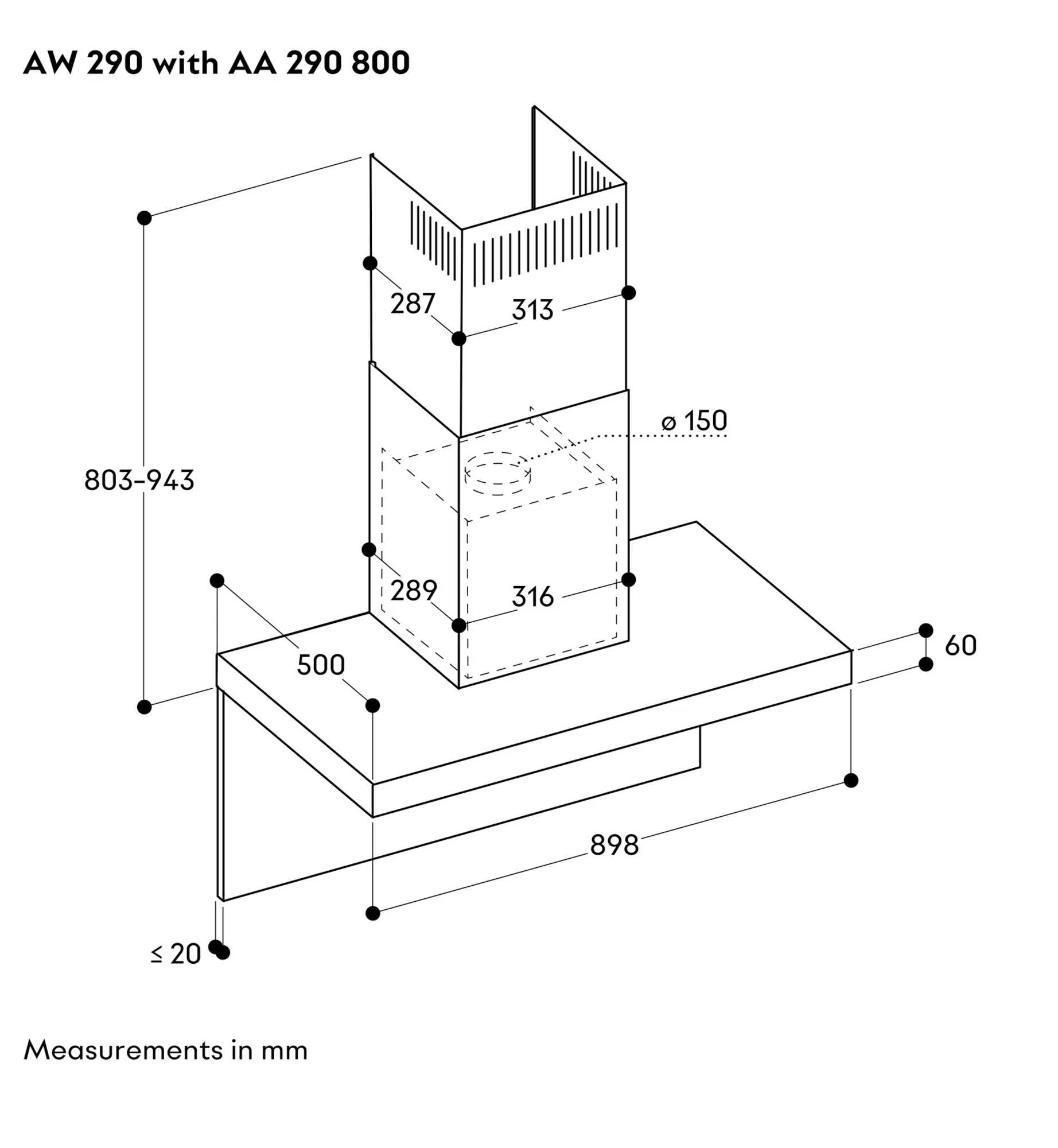 200 series Wall-mounted hood 90 cm Stainless steel lookAW290110