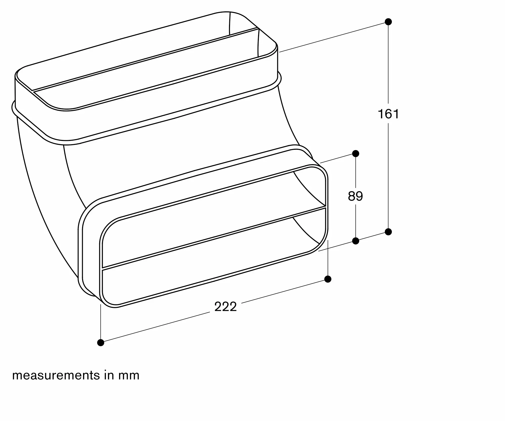 Vertical 90° bow with large radius for ductings behind the backpanel/furniture (from on 70 cm worktop depth).