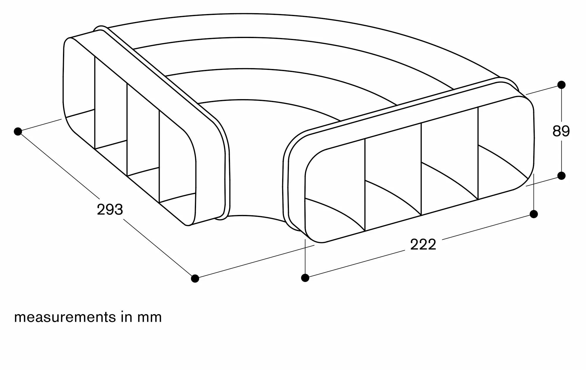 Aerodynamically optimised for minimised pressure losses and maximised flow rate.