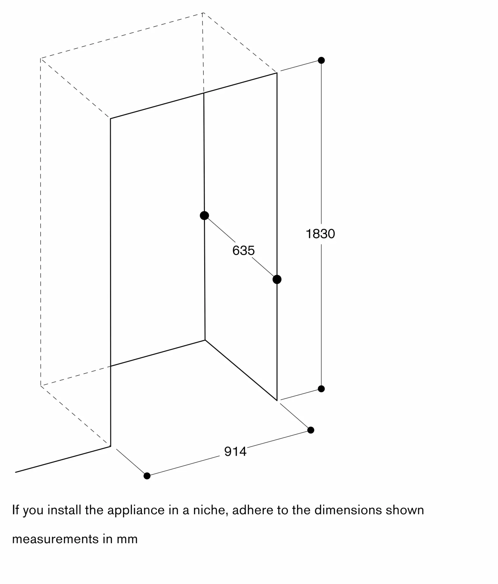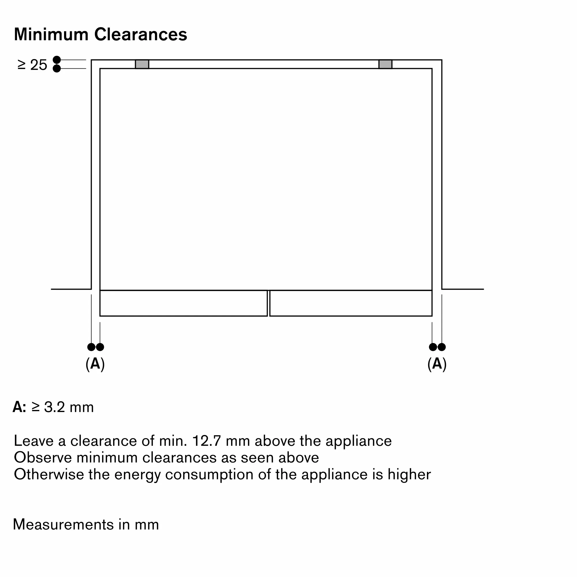 Wall recess of 25 mm necessary.