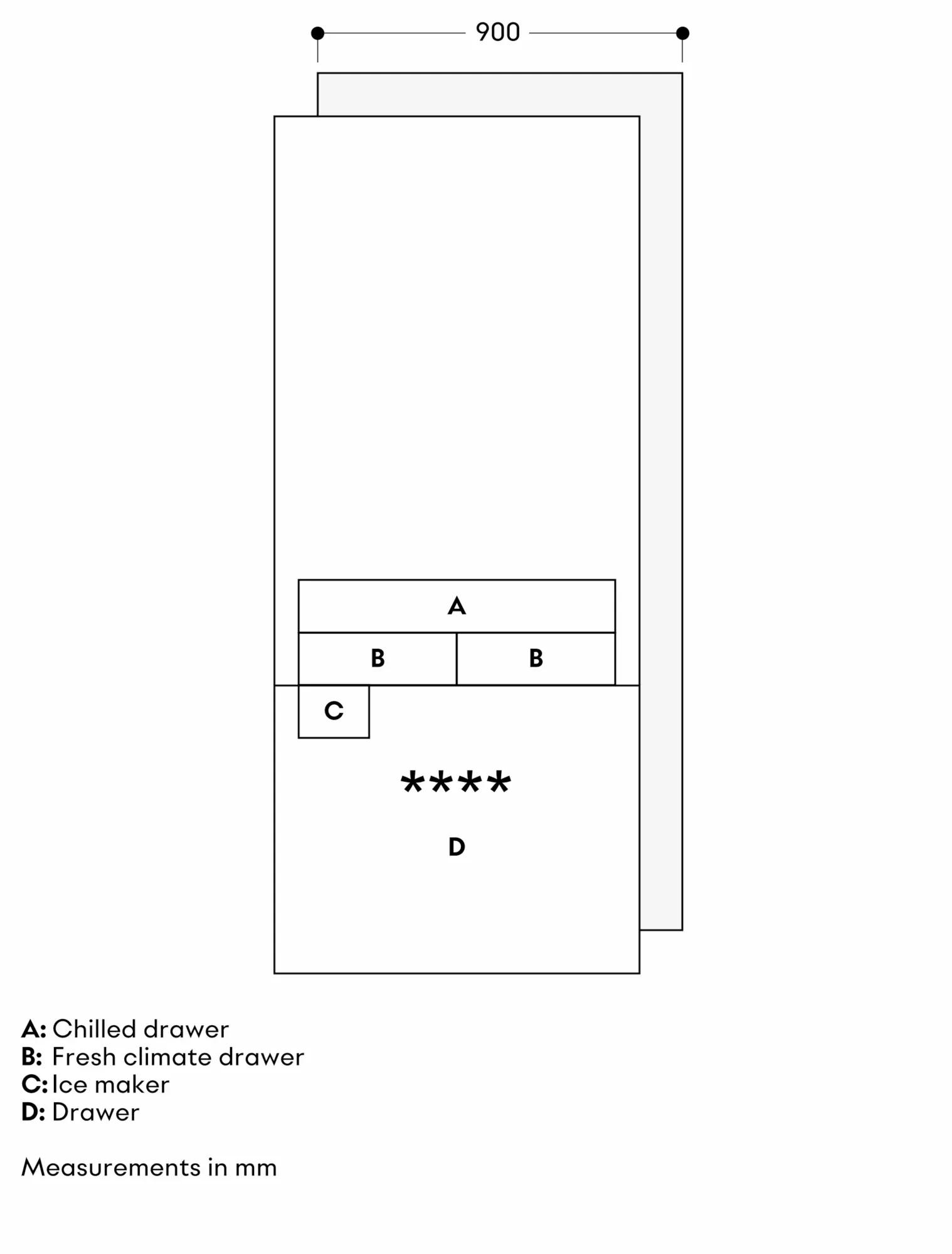 Fresh cooling 0 °C, 2 fresh climate drawers, 1 chilled drawer