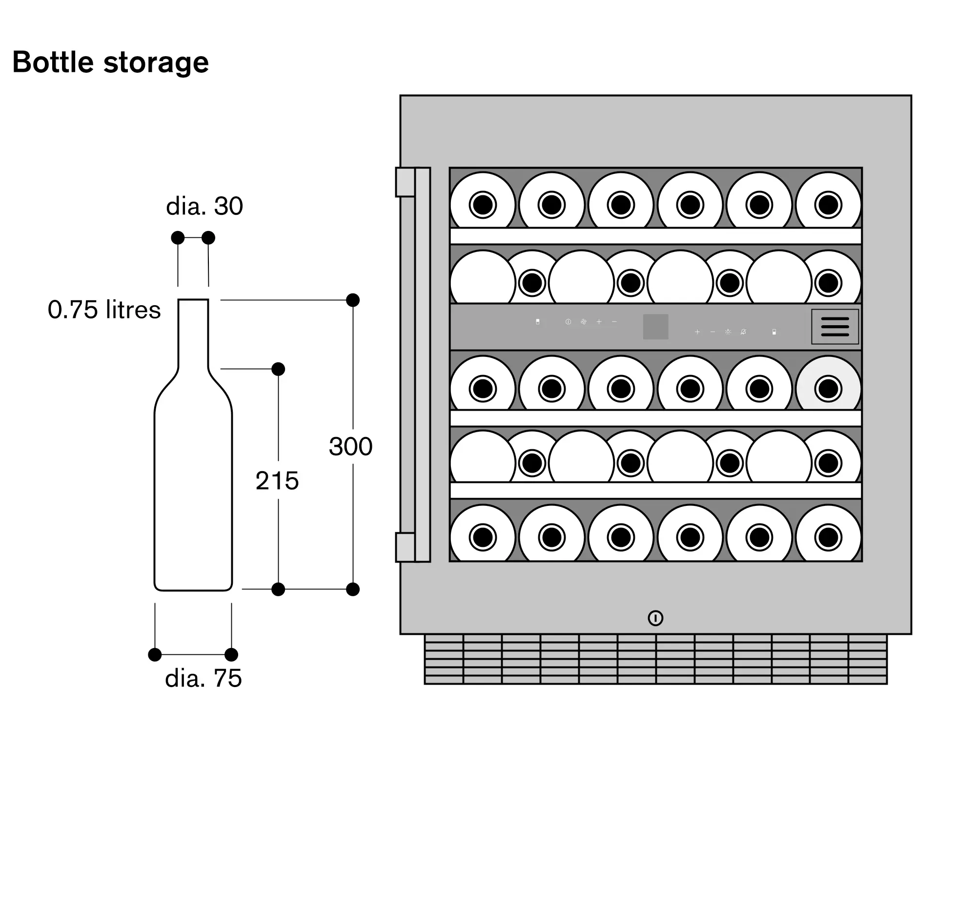 Capacity 34 bottles (based on 0.75 l standard bottles).