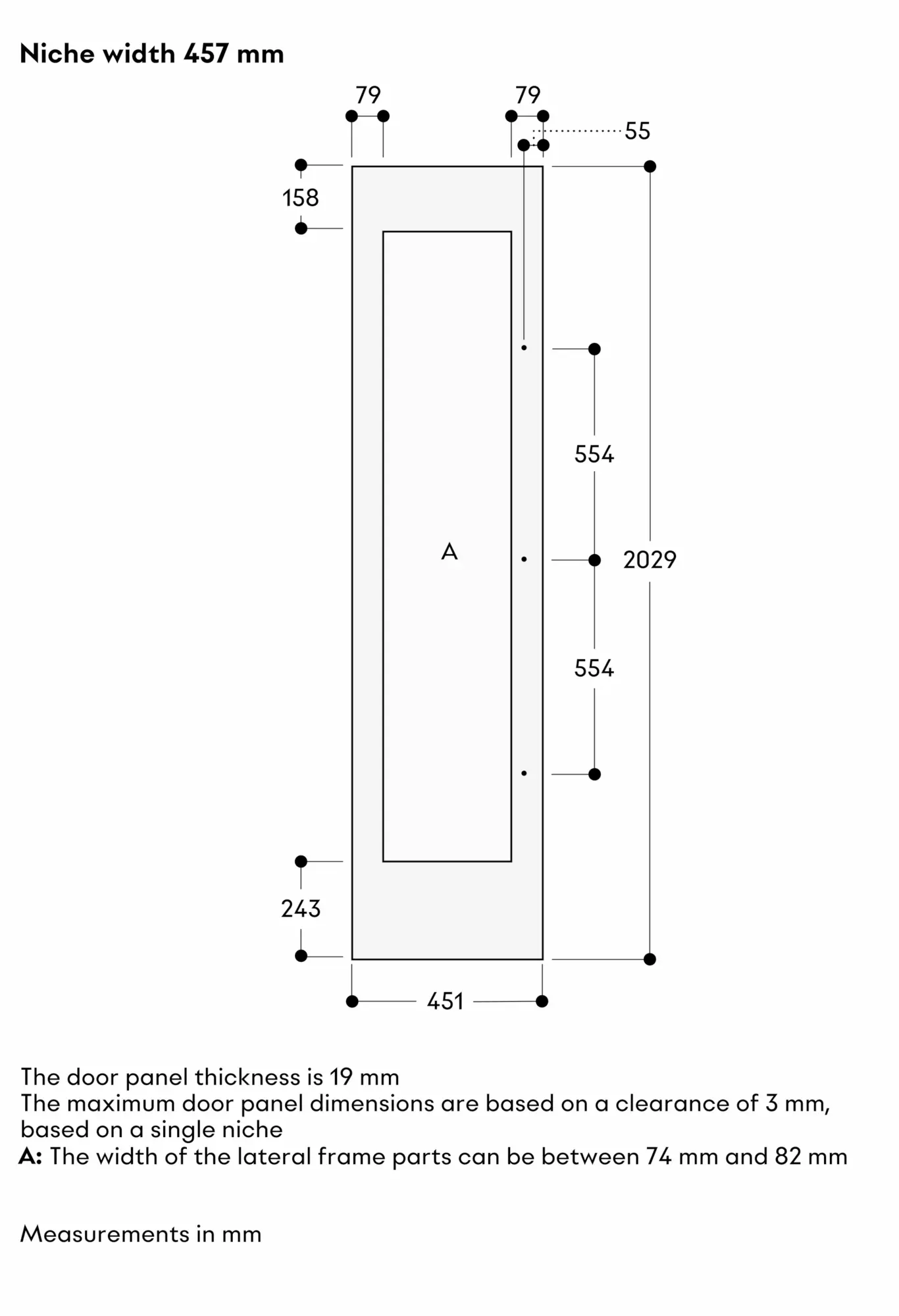 Max. door panel frame weight 74 kg.