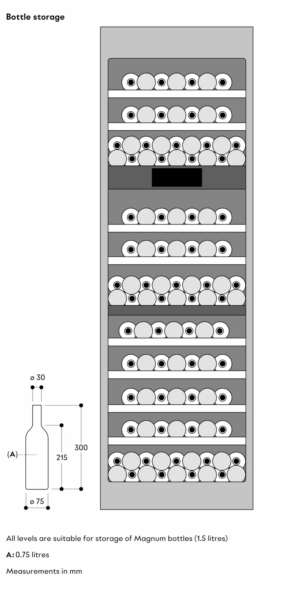 Capacity 110 bottles (based on 0.75 l standard bottles).