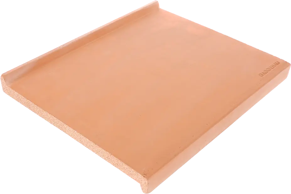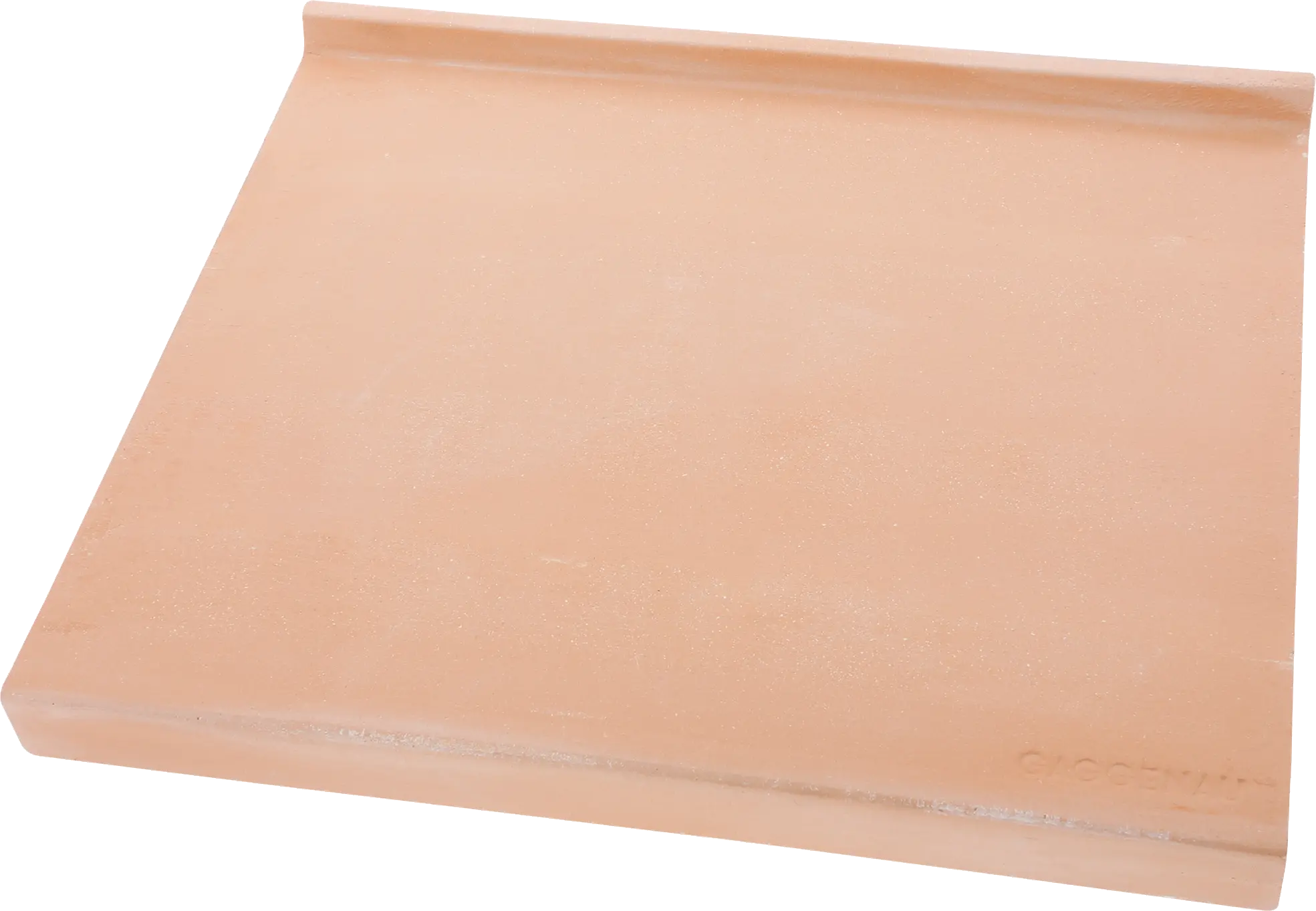 Hand finished the baking stone is capable of being heated to over 300° C for crisp pizzas and professional tarte flambée