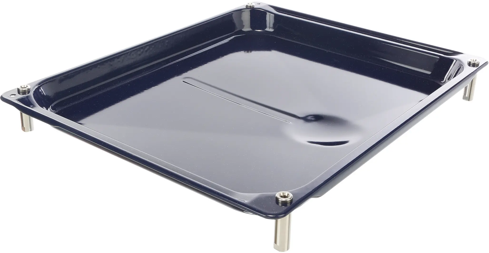 Grill pan blue enamelled, with feet and rotisserie spit attachment 460 x 375 x 32 mm