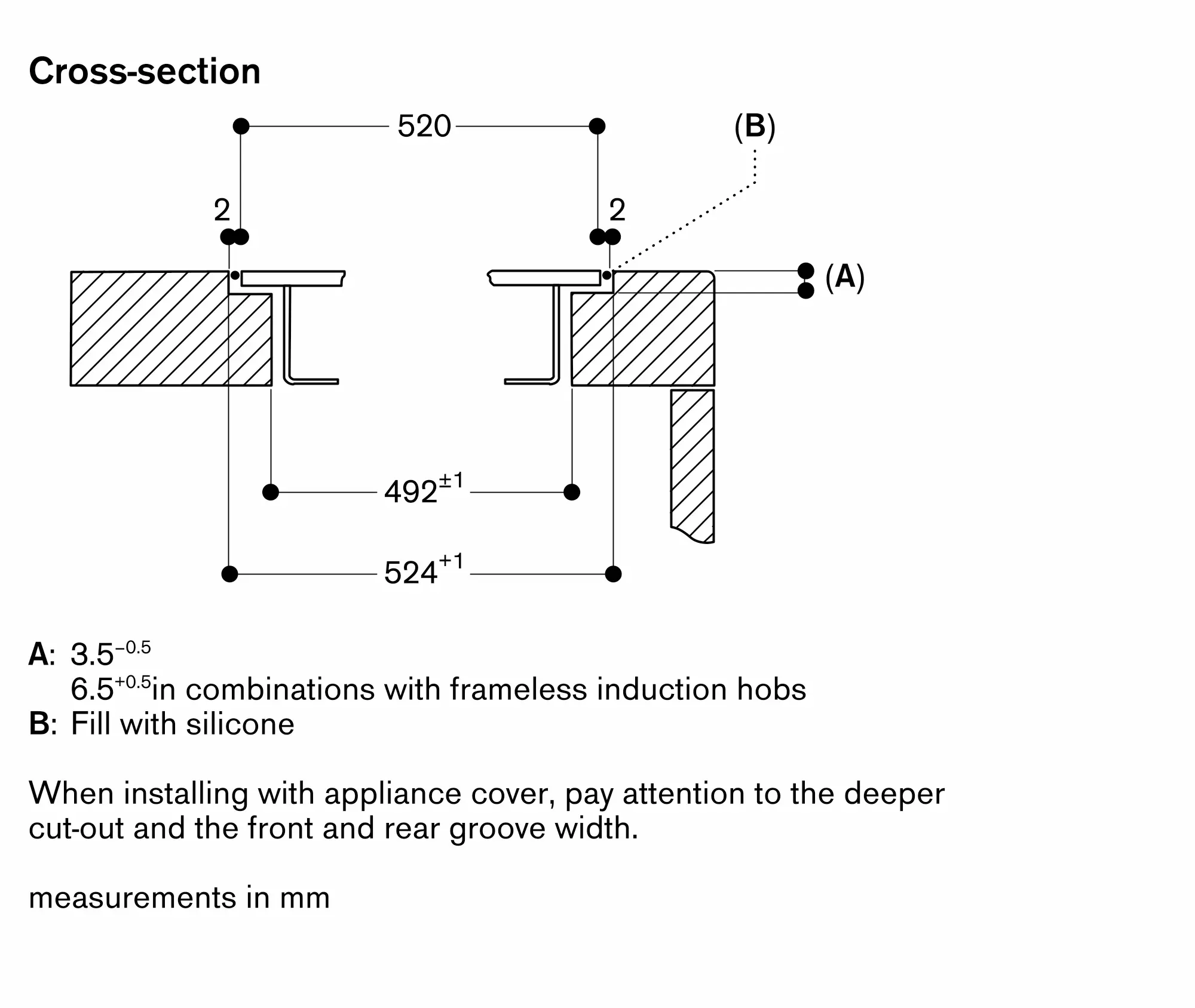 The groove must be continuous and even, so that uniform placing of the appliance on the gasket is ensured. Do not use discontinuous lining.