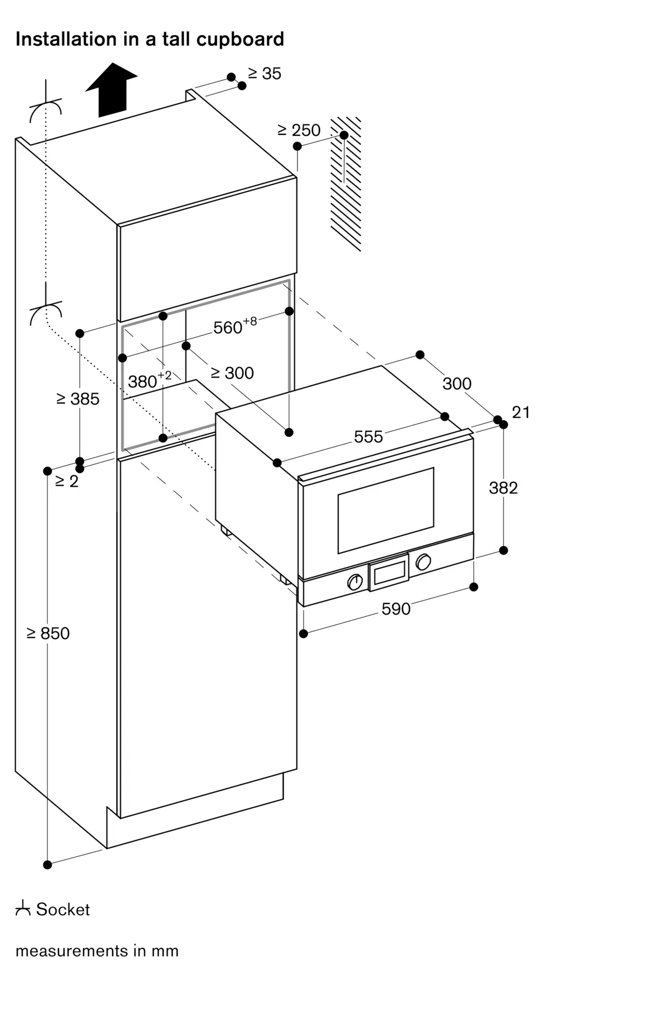Minimum installation height 85 cm (top edge of niche bottom).