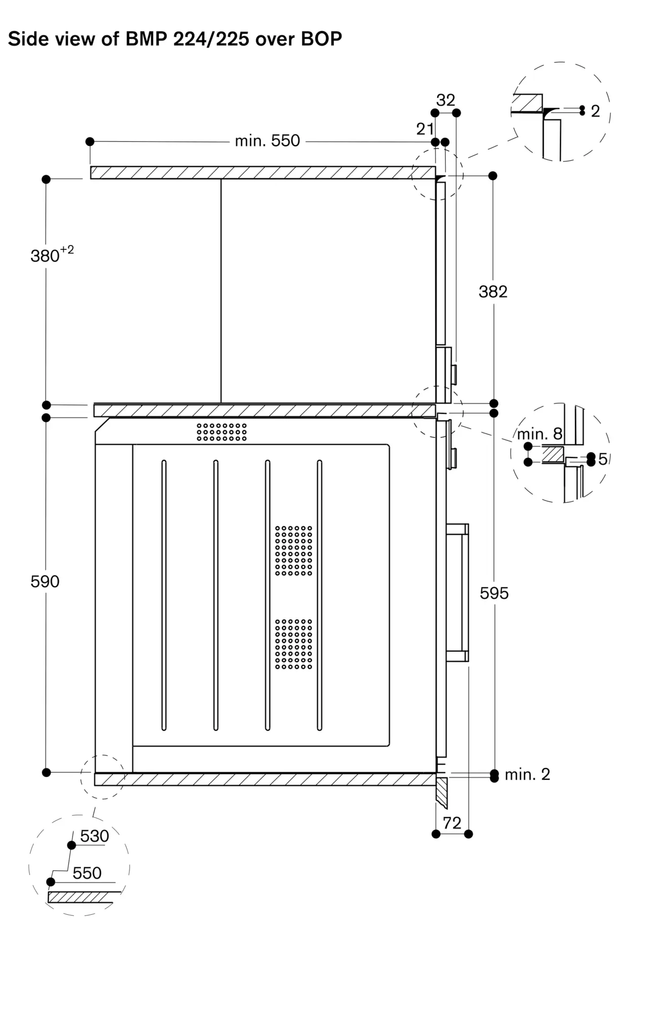 Necessary lateral gap between appliance door and furniture panel of min. 5 mm.