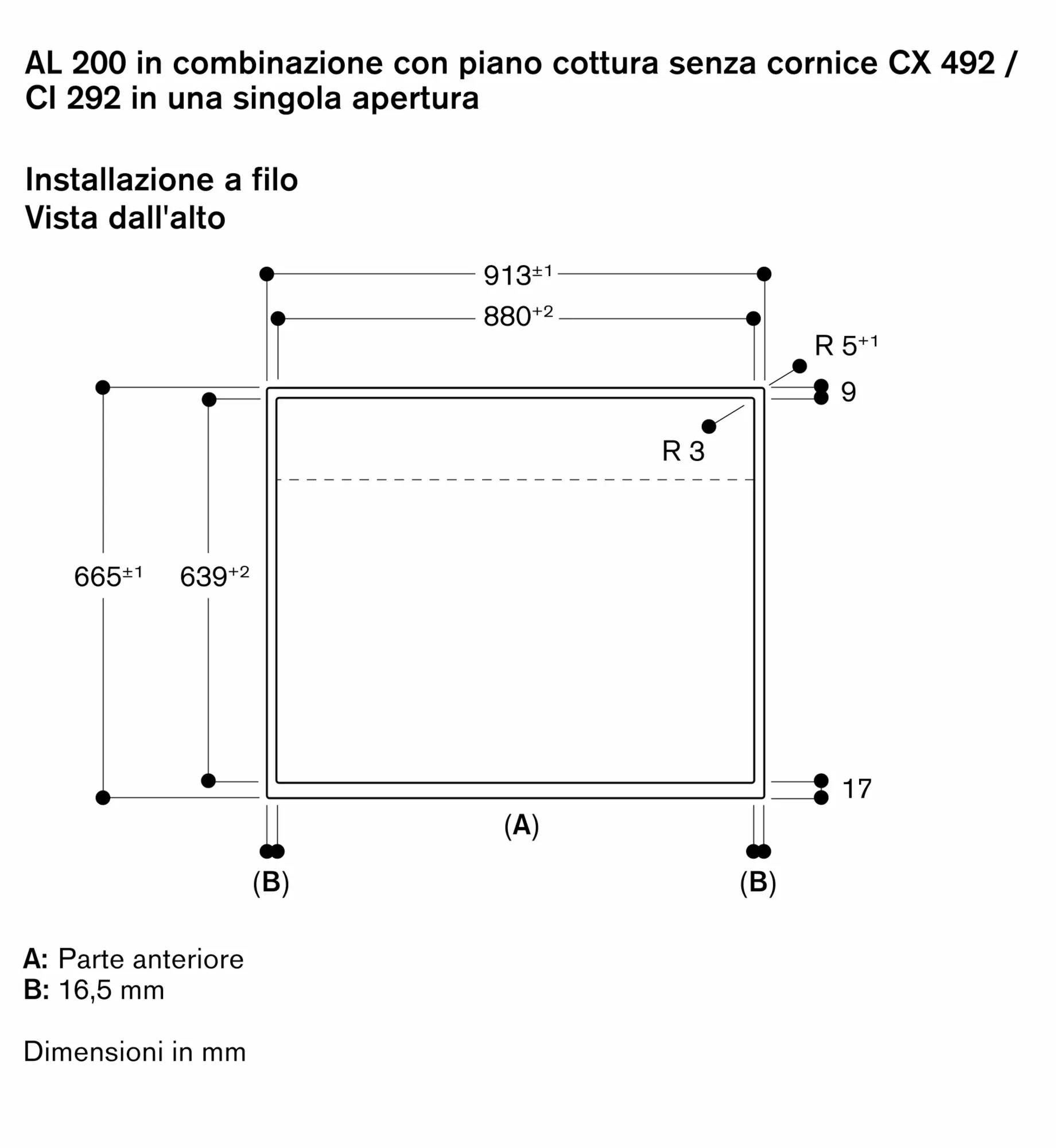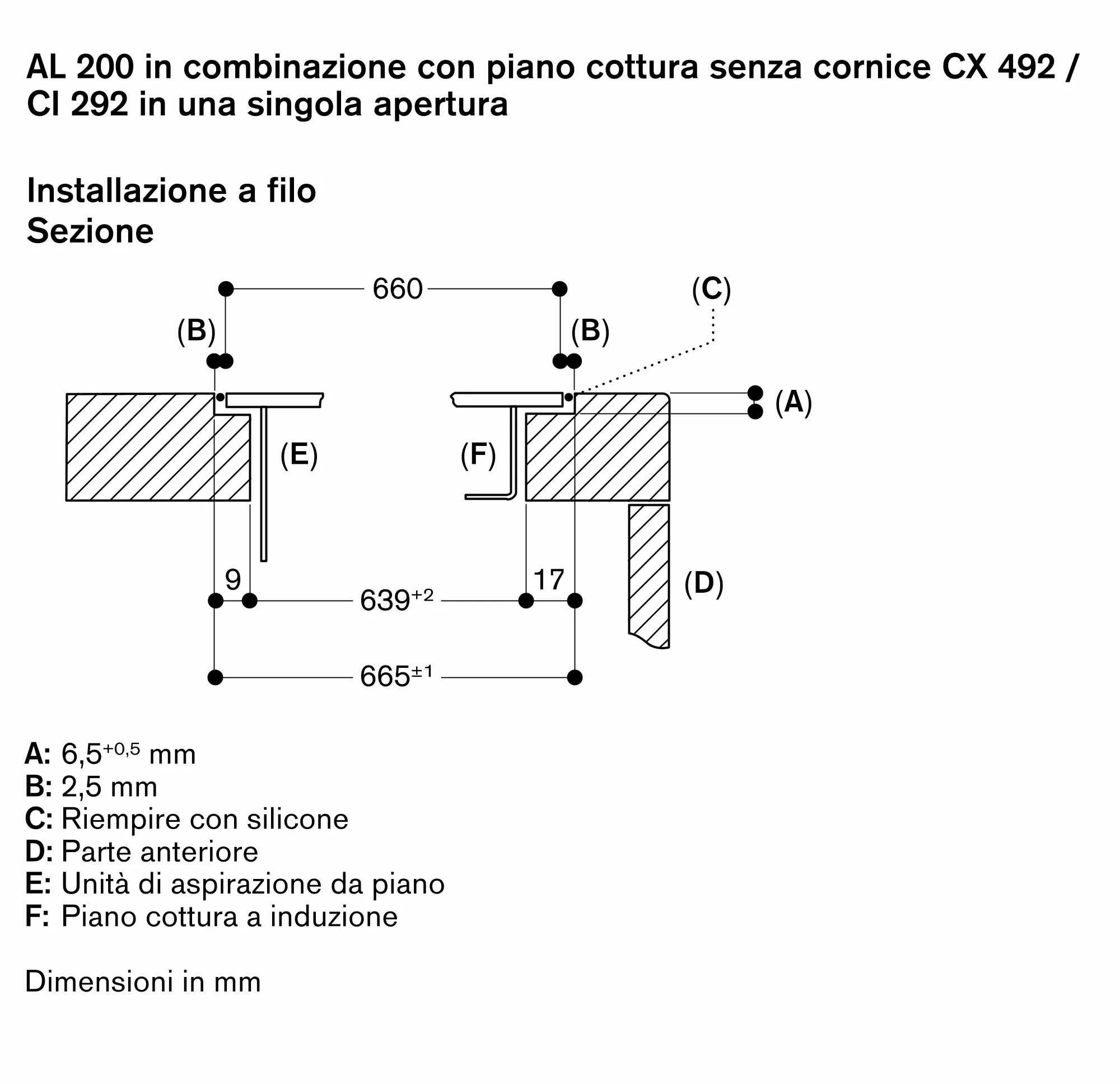 Combinabile con piani cottura a induzione senza cornice Serie 400 (CX 492) o Serie 200 (CI 292), in un singolo foro d'incasso.