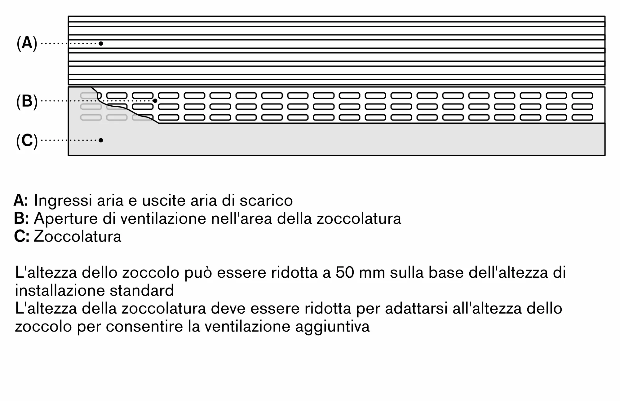 I cassetti nei modelli RVC e RVF sono posizionati alla stessa altezza. In caso di installazione affiancata, i ripiani in vetro di sicurezza e i balconcini della porta possono essere allineati alla stessa altezza.