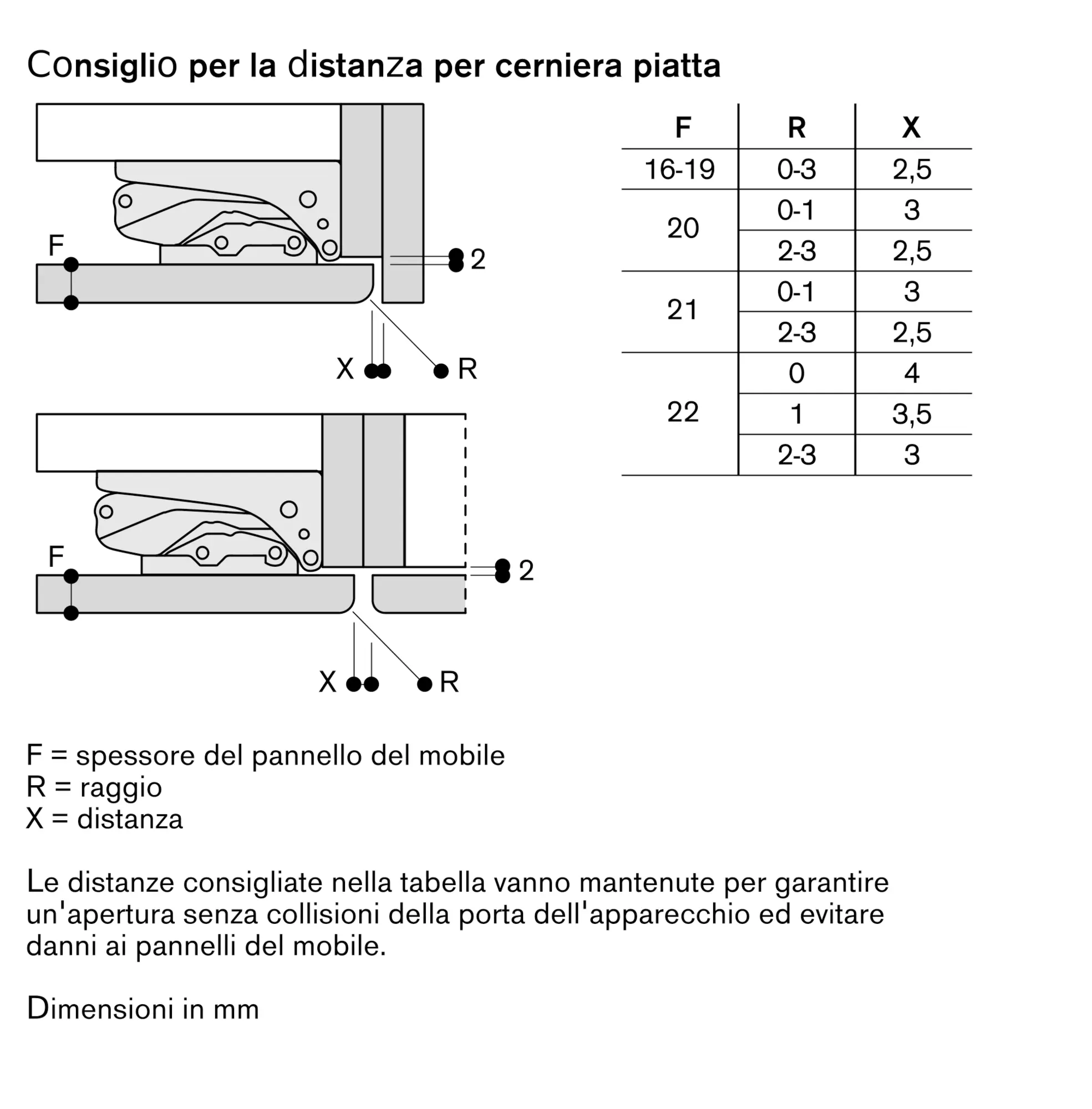 Sistema Soft Closing con cerniere piatte per permettere la chiusura ammortizzata della porta da un angolo di apertura di 20°.
