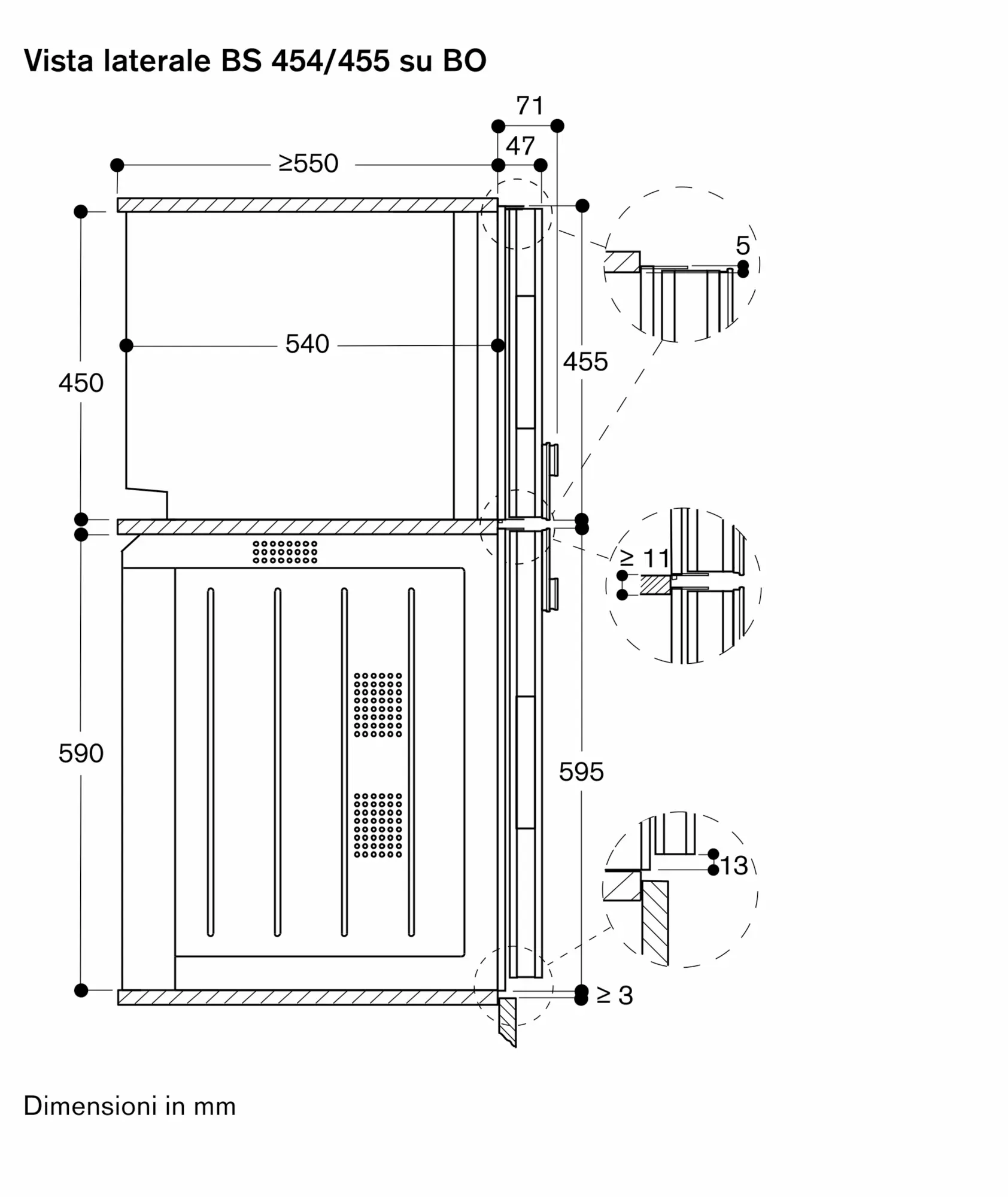 L'apparecchio sporge di 47 mm dal fronte della nicchia del mobile.