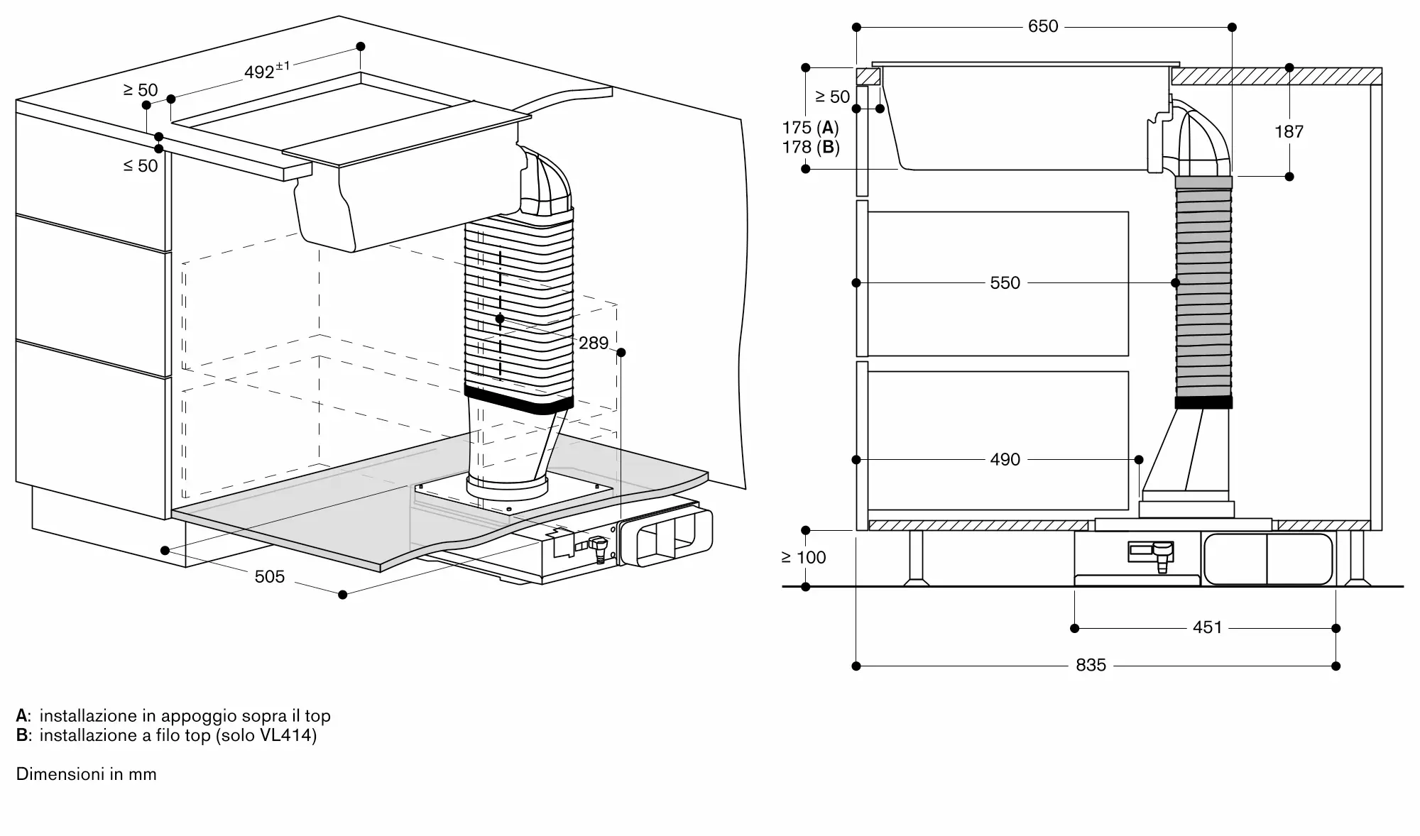 Tra due VL è possibile installare piani cottura di larghezza fino a 80 cm, eccetto i piani CX 482.