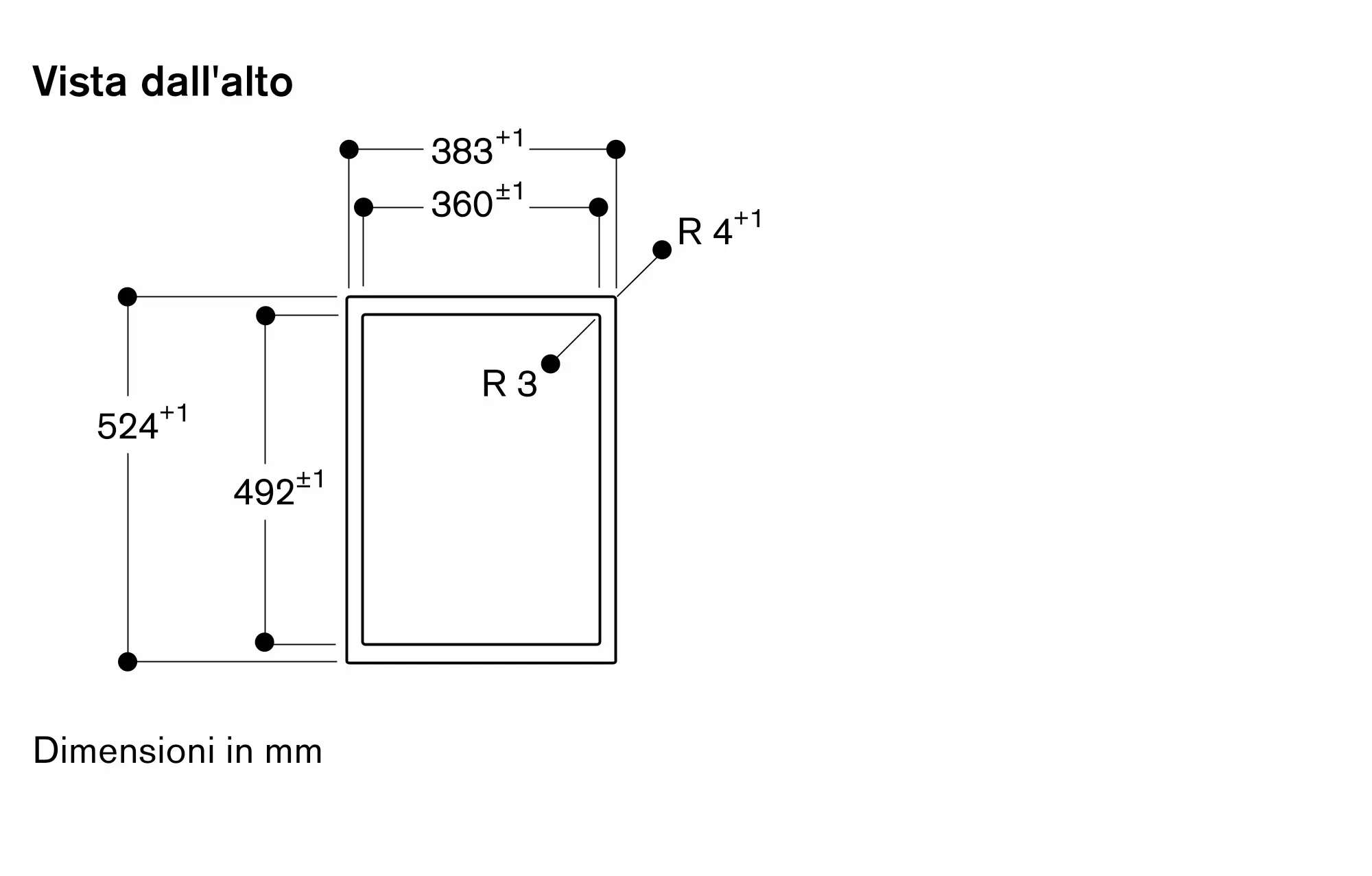 L'installazione è possibile in piani di pietra, sintetici o in legno massello. Devono essere rispettate la resistenza termica e la tenuta stagna dei bordi dell' intaglio. Per quanto riguarda gli altri materiali si prega di consultare il produttore del piano di lavoro.