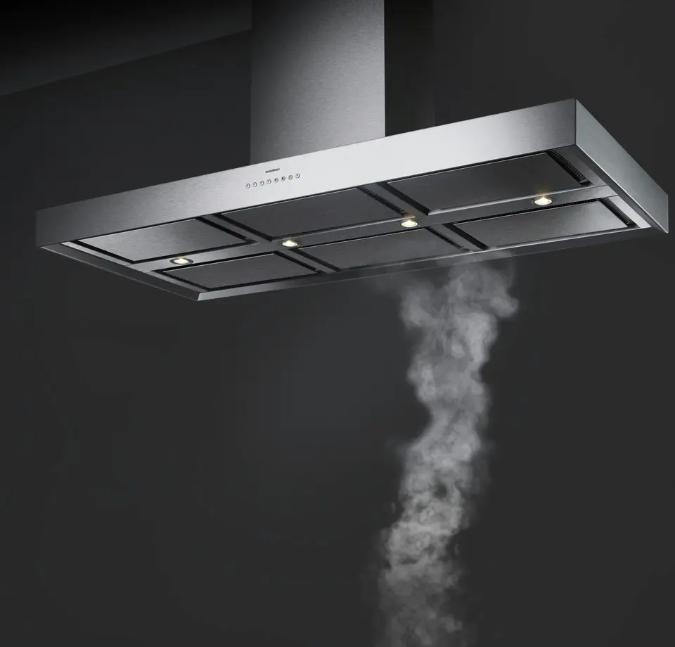 3 Elektronisch gestuurde standen + intensiefstand, intervalfuntie, naventilatie, verzadegingsaanduiding en de vetfilter
