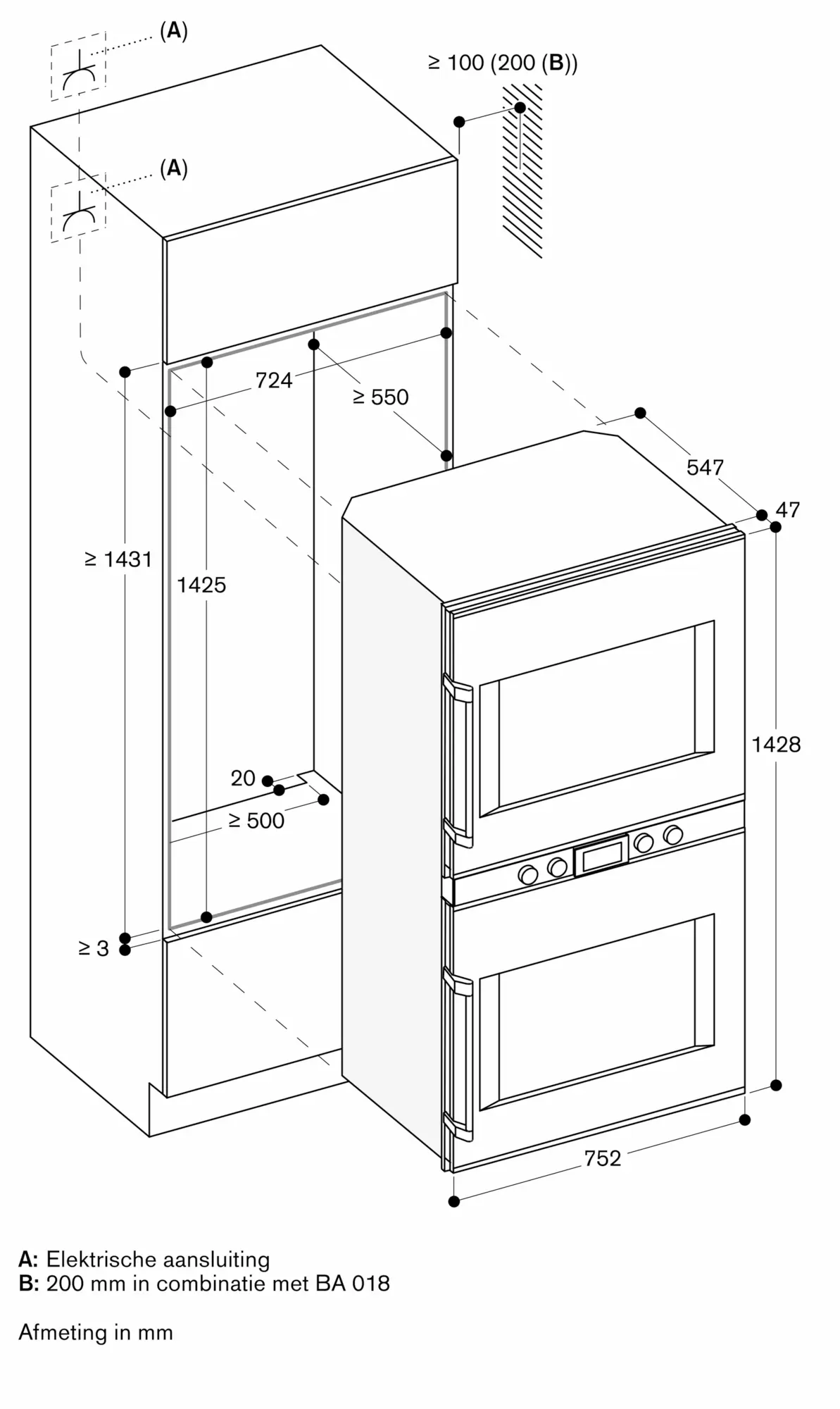 De elektrische aansluiting dient men buiten de inbouwnis te plaatsen.