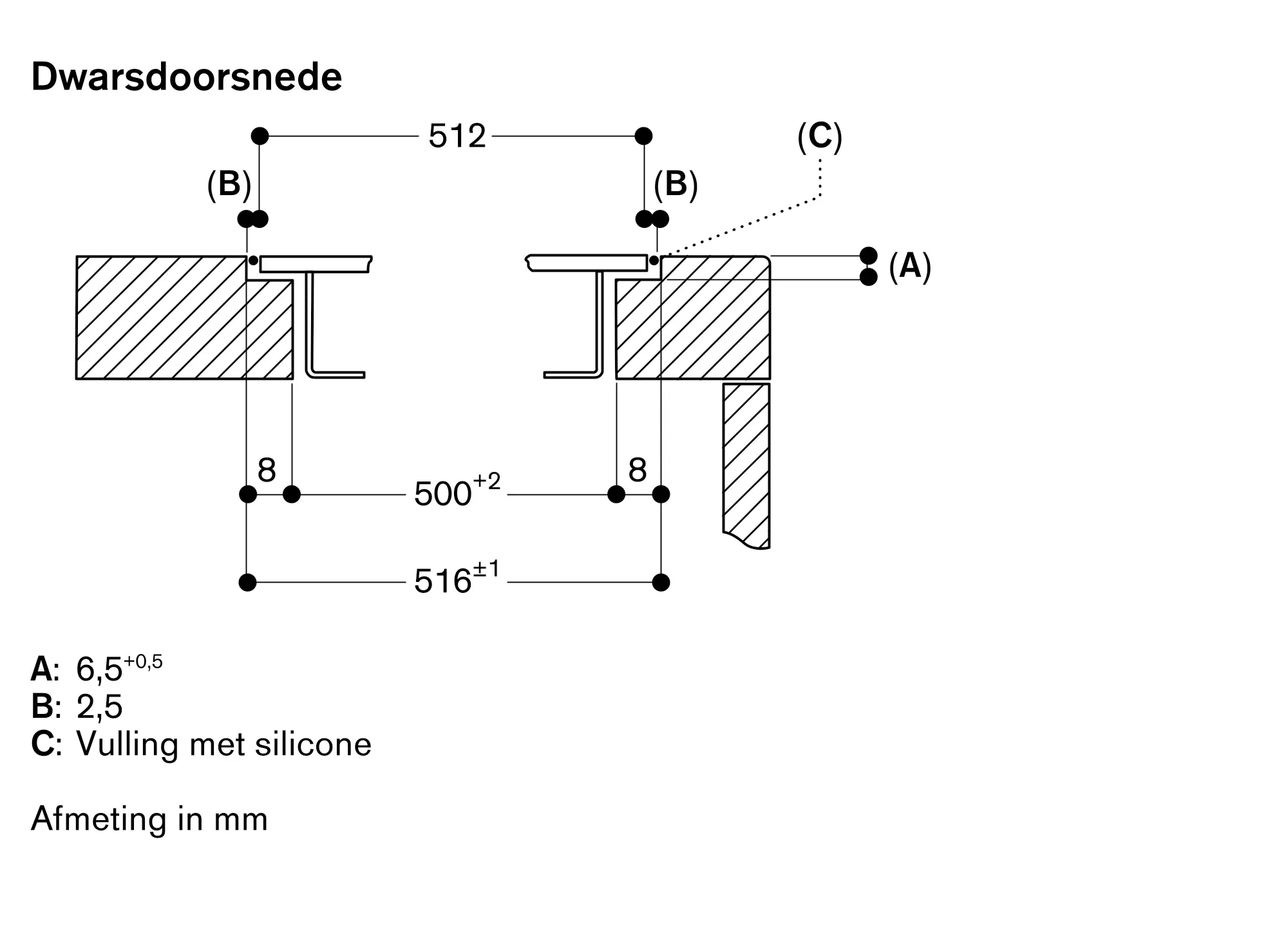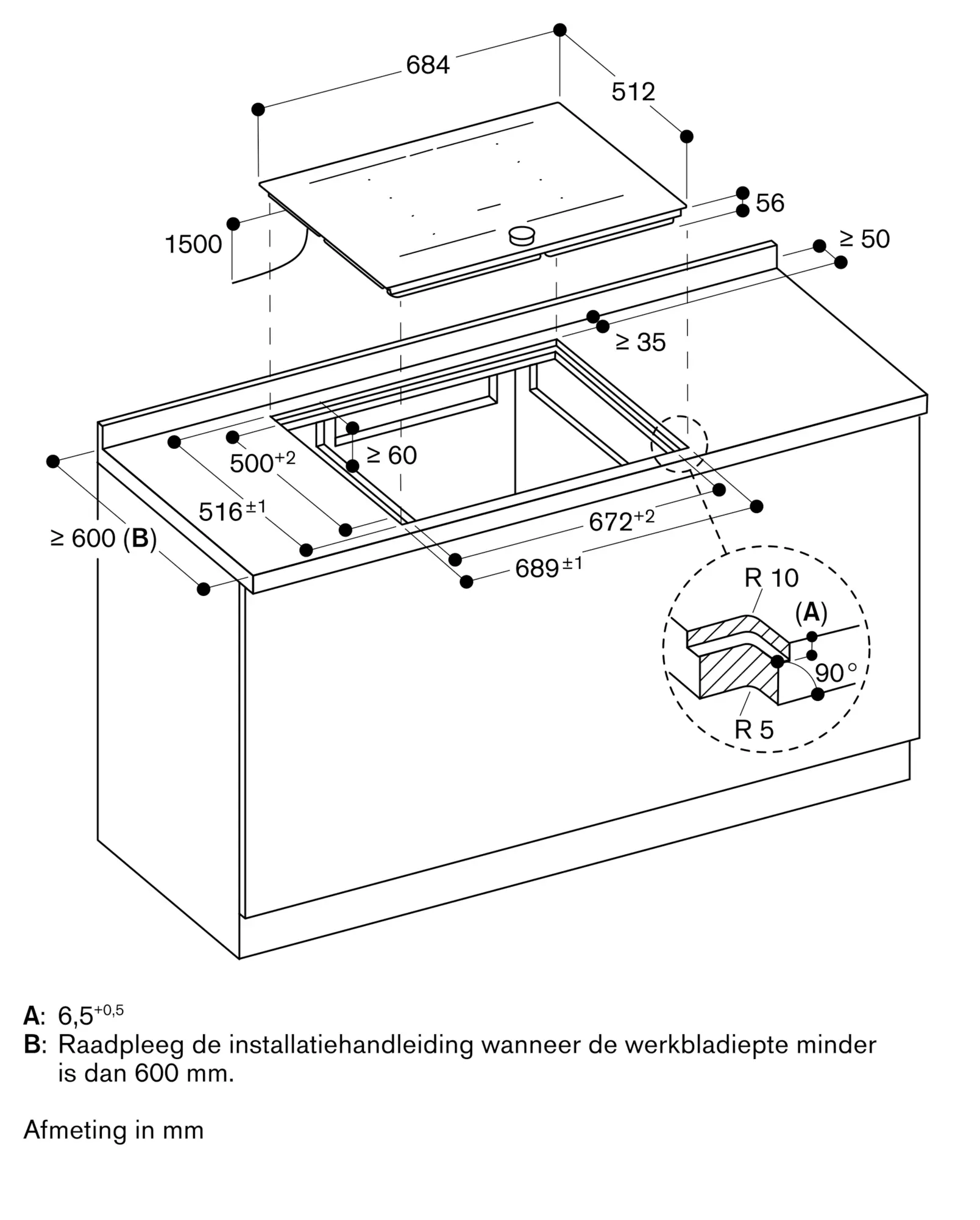 Installatie is mogelijk in werkbladen van steen, kunststof of hout. Hitte bestendige en waterdichte afdichting is nodig. Met betrekking tot andere materialen raadpleeg de werkblad fabrikant.