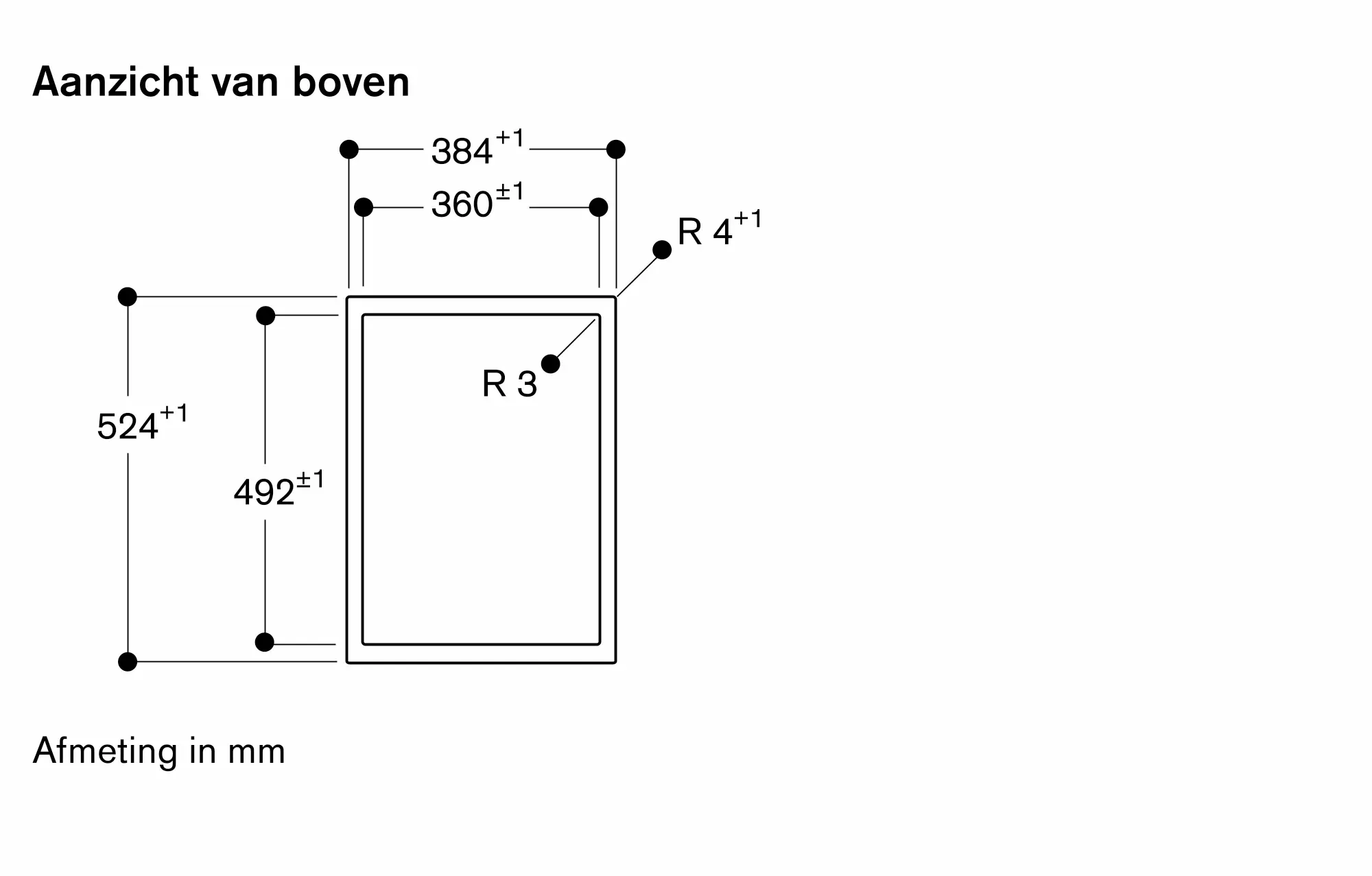 Afhankelijk van de manier van installeren (opbouw of vlak geïntegreerd), kan de uitsparing van de kookplaat en de positie van de bedieningsknop variëren.