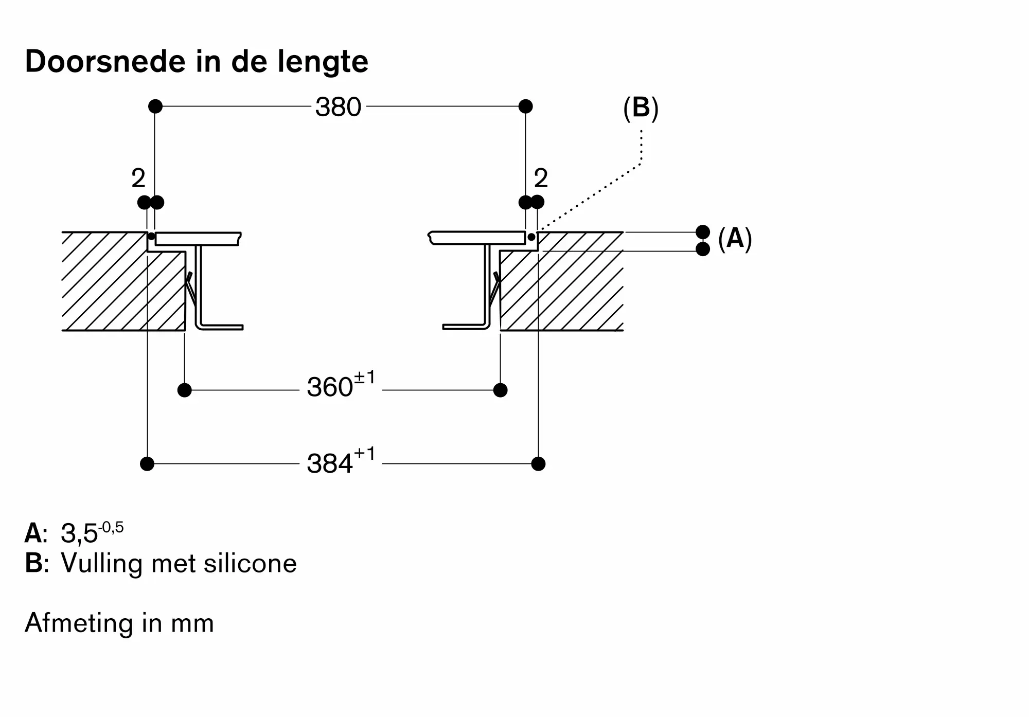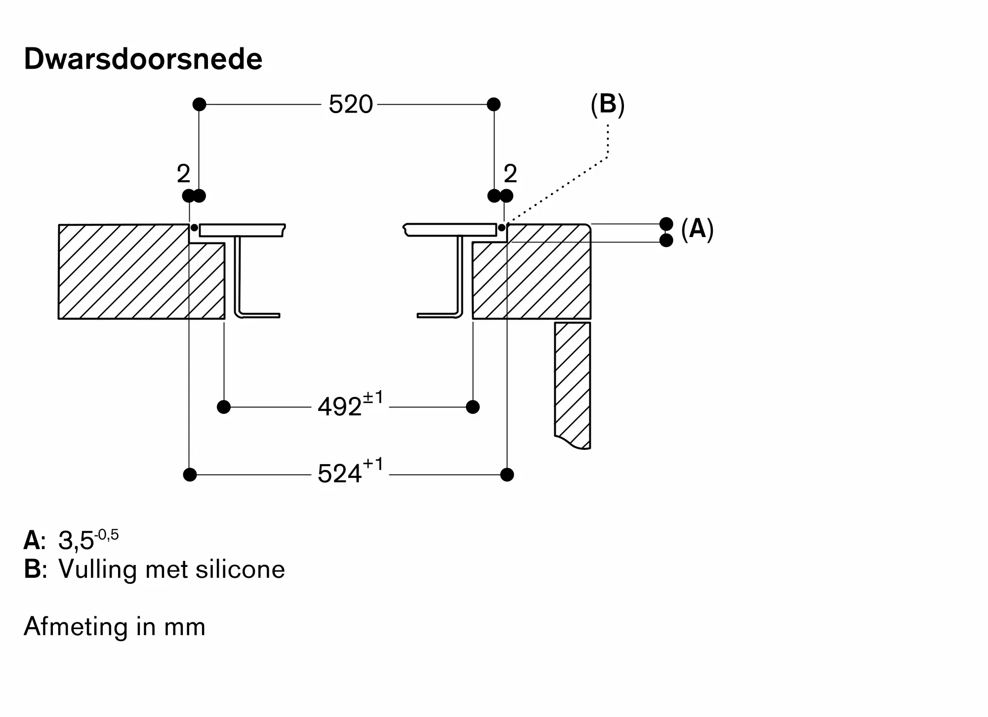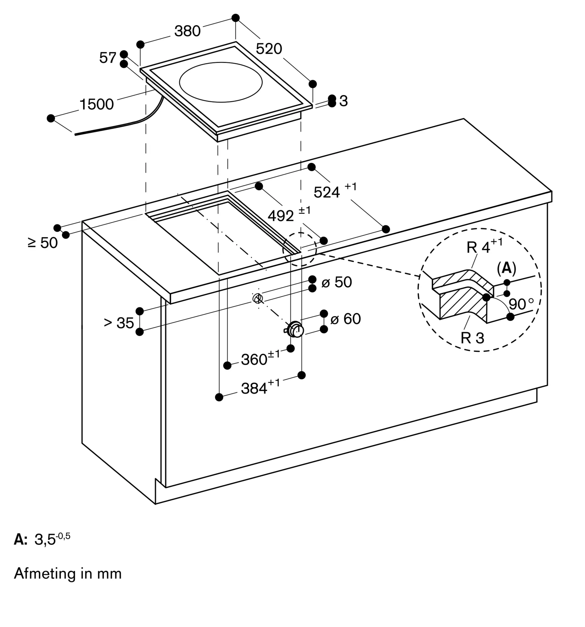 Installatie is mogelijk in werkbladen van steen, kunststof of hout. Hitte bestendige en waterdichte afdichting is nodig. Met betrekking tot andere materialen raadpleeg de werkblad fabrikant.