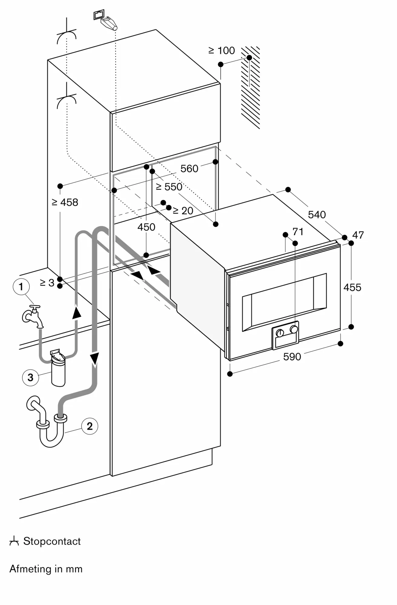 De elektrische aansluiting dient men buiten de inbouwnis te plaatsen.
