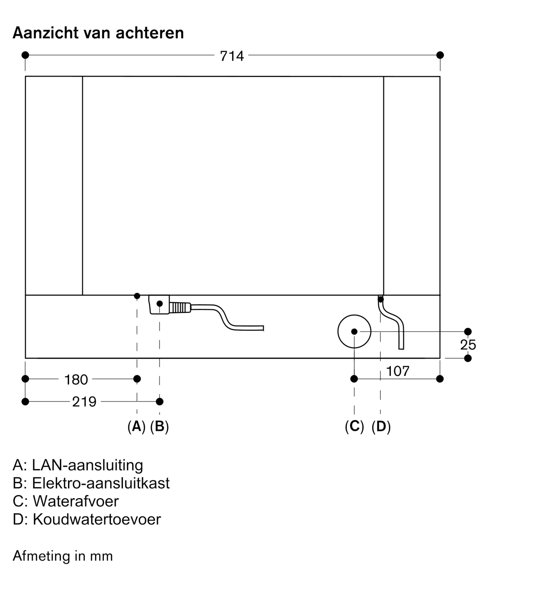 De elektrische aansluiting dient men buiten de inbouwnis te plaatsen.