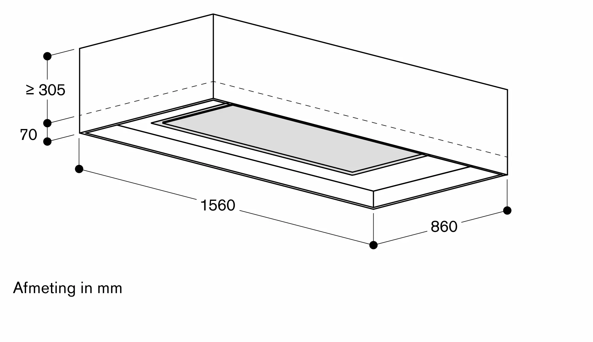 In dit geval is de maximale breedte van de kookplatencombinatie 100 cm. Als je een frame of een rookafzuiging toevoegt, is de maximale breedte van de combinatie kookplaten 130 cm.