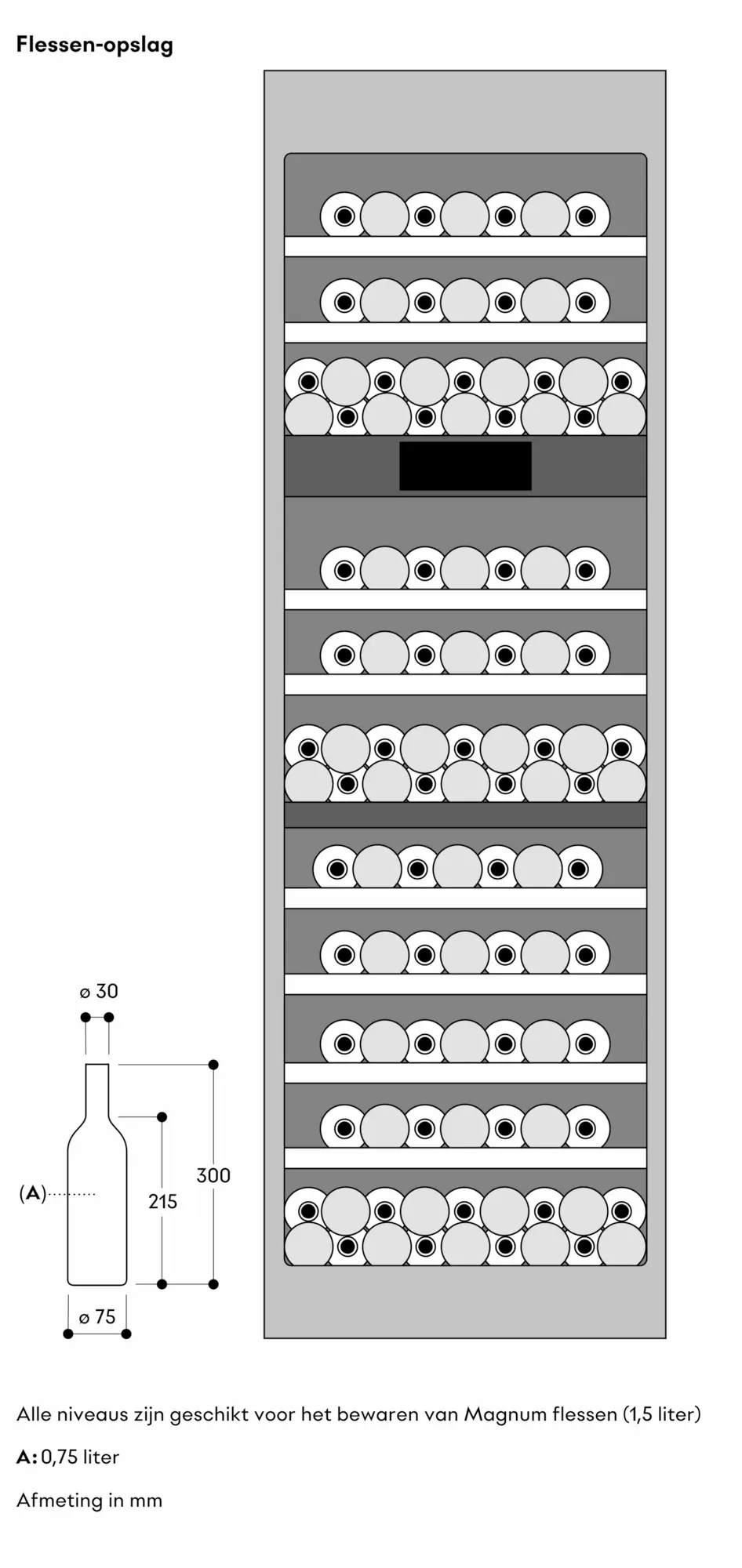 Opslag van Magnum-flessen mogelijk op elk rek (tot 4 Magnum-flessen).