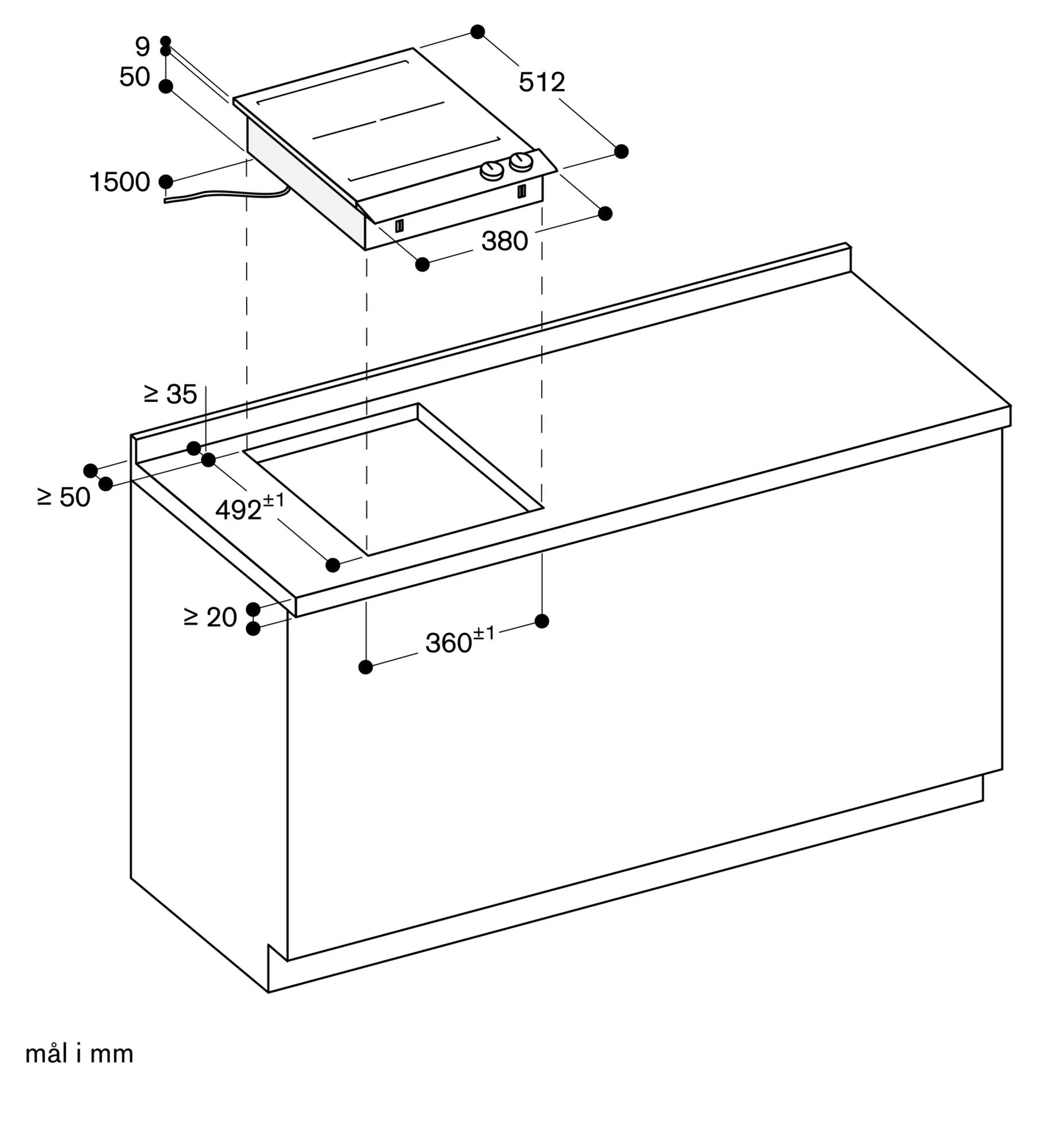 2 flex-induksjonssoner 19x24 cm (2200 W, med booster 3700 W), sammenkoplet 38x24 cm (3300 W, med booster 3700 W)