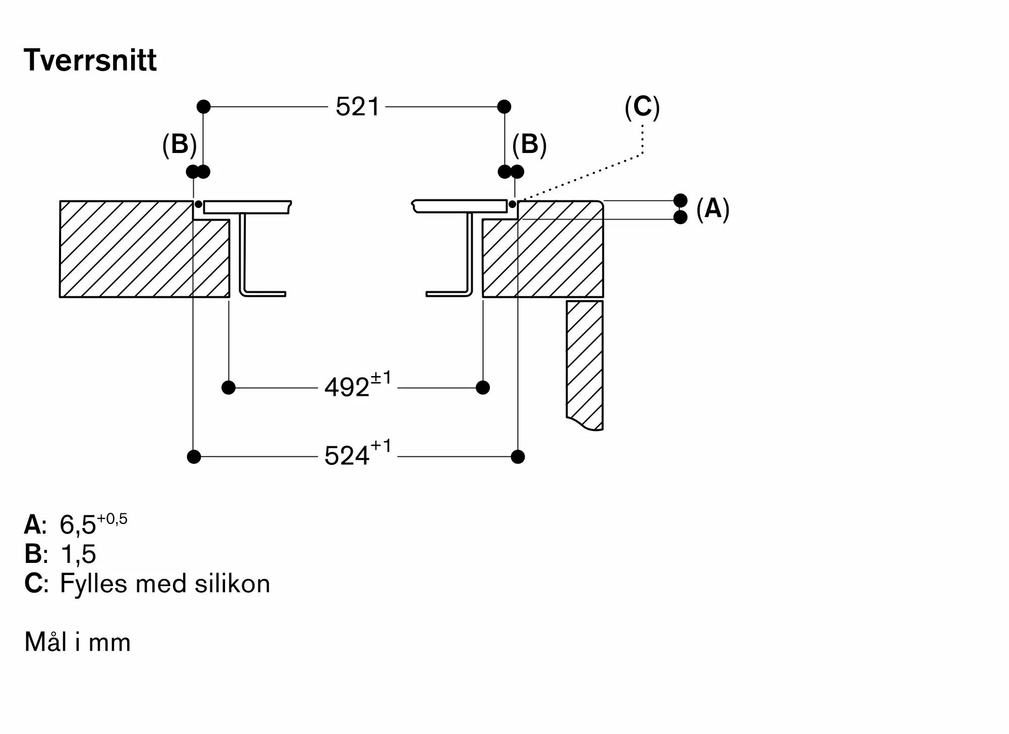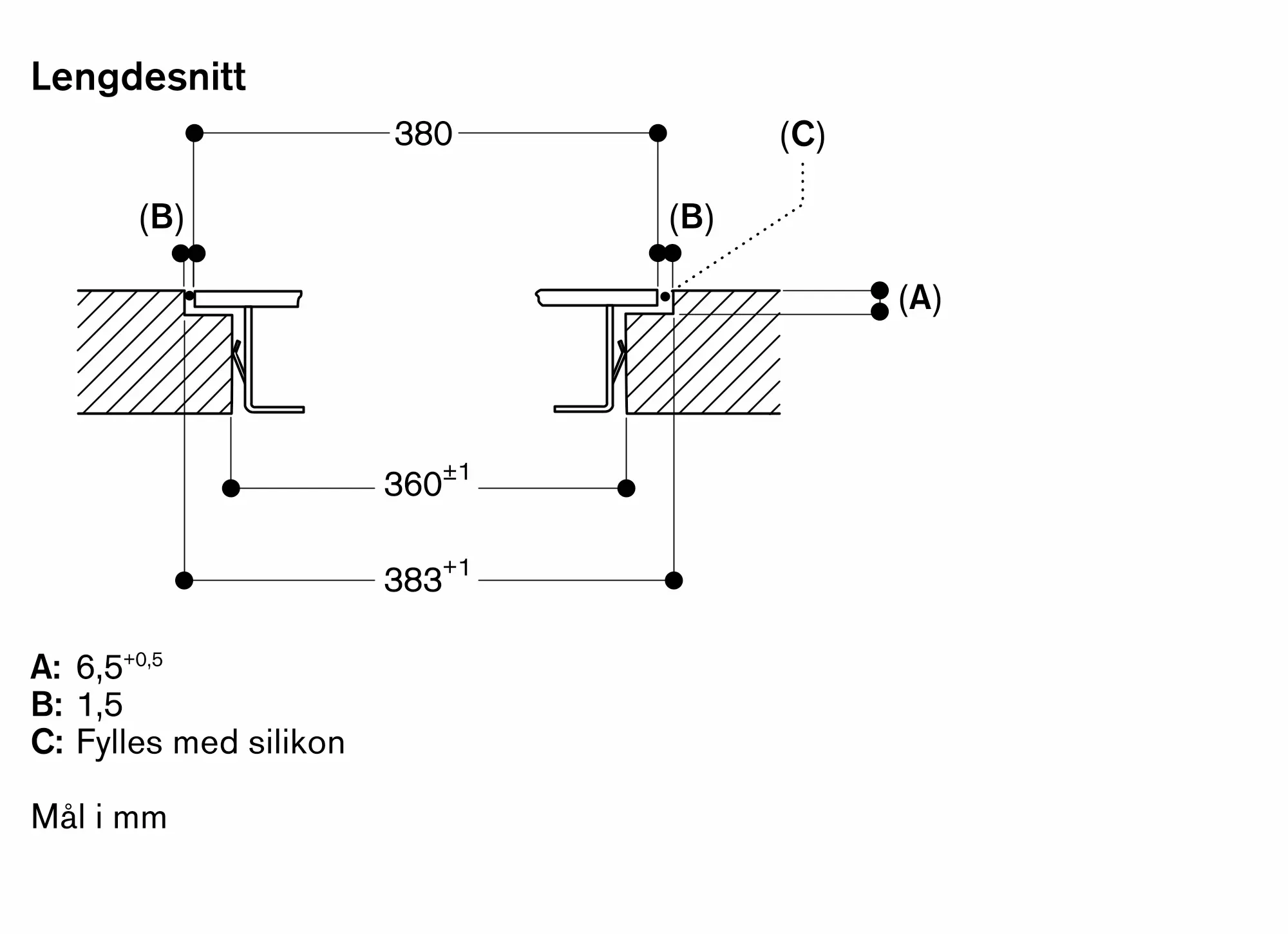 Den kombinerte bredden kan variere noe på grunn av størrelsestoleranser og utskjæringen i benkeplaten
