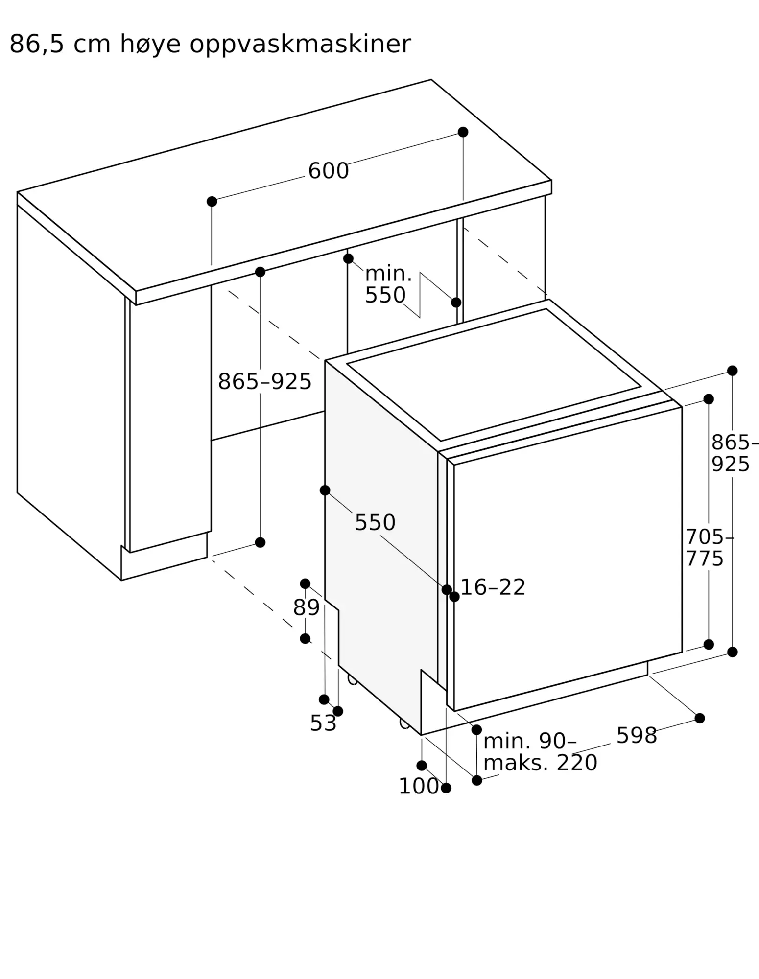 Målet på fronten avhenger av sokkelhøyden på kjøkkeninnredningen