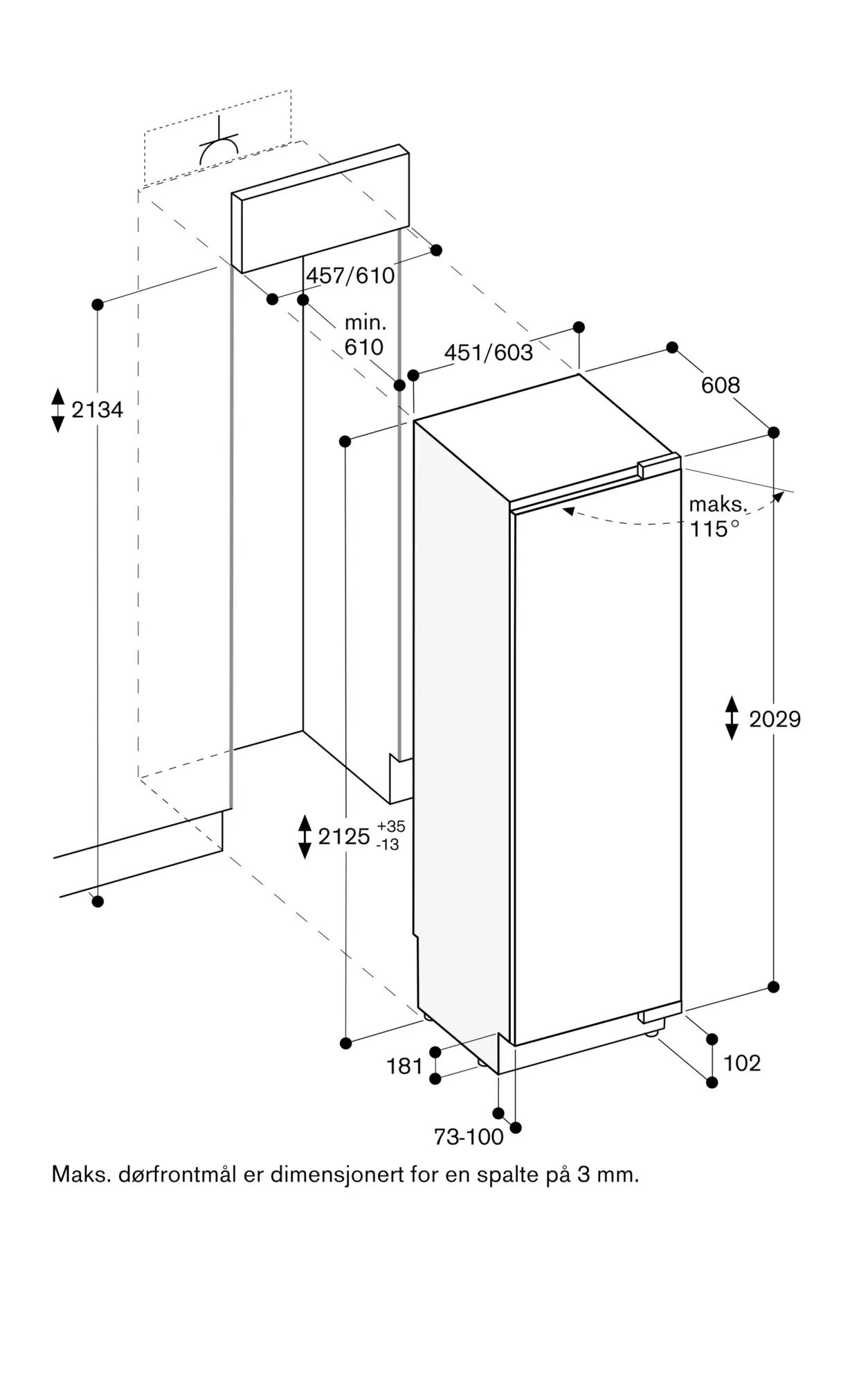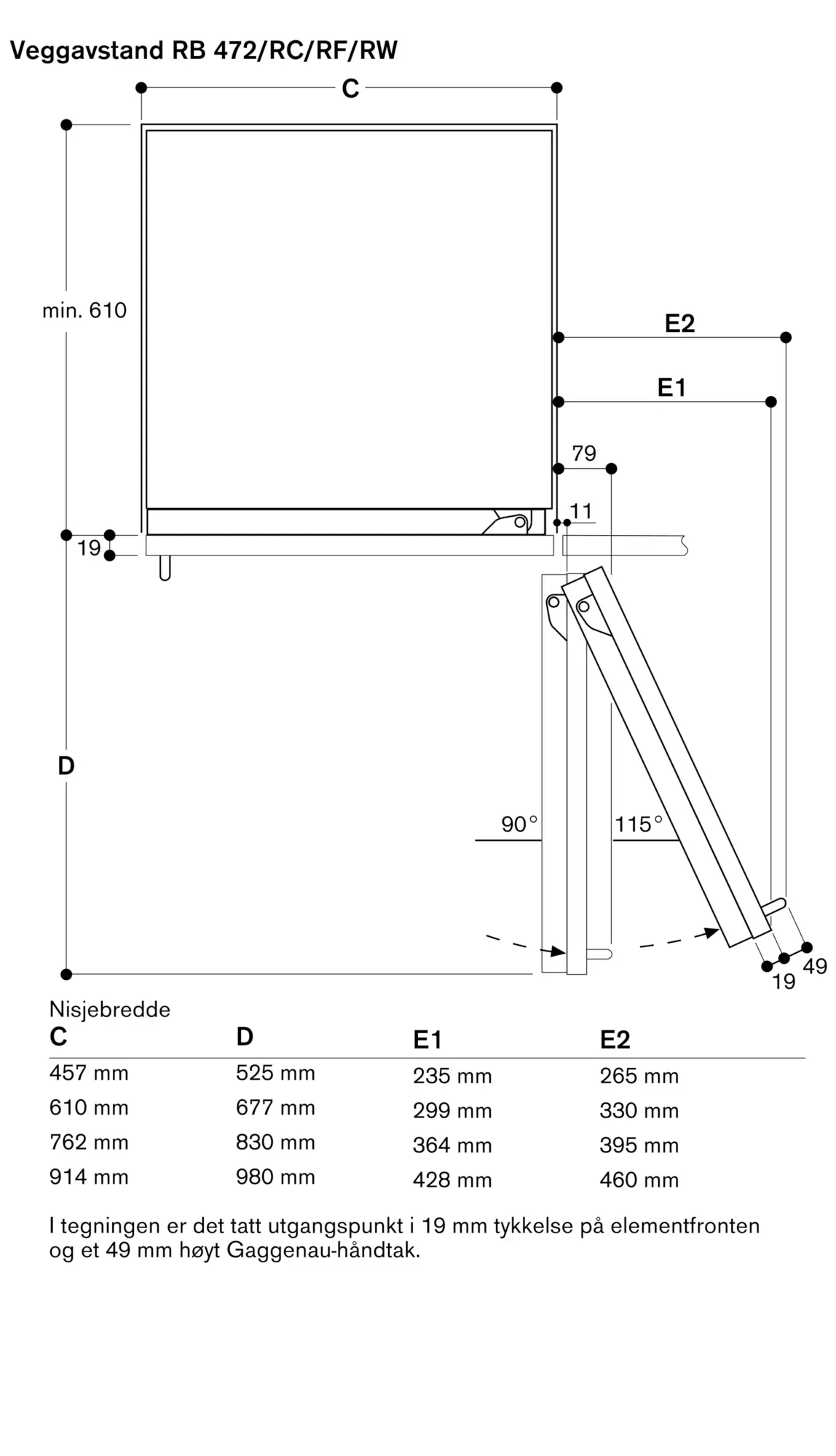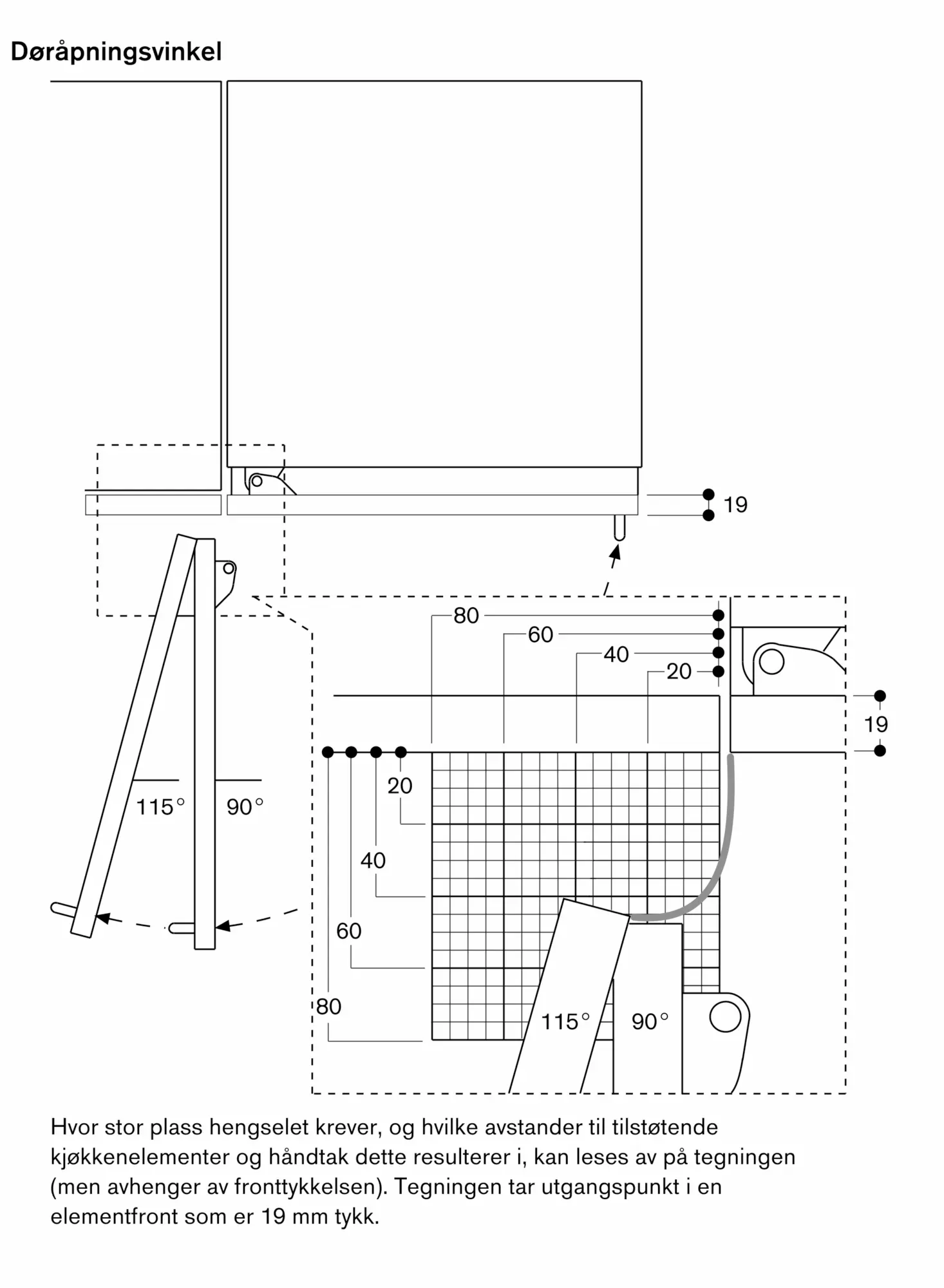 Døråpningsvinkel 115°, kan låses ved 90°