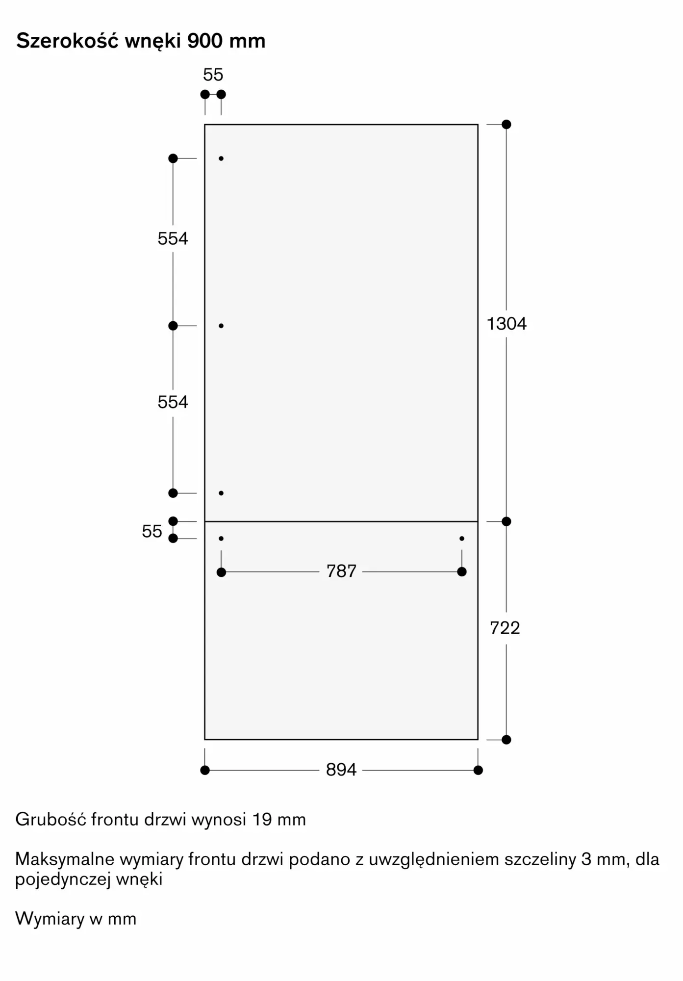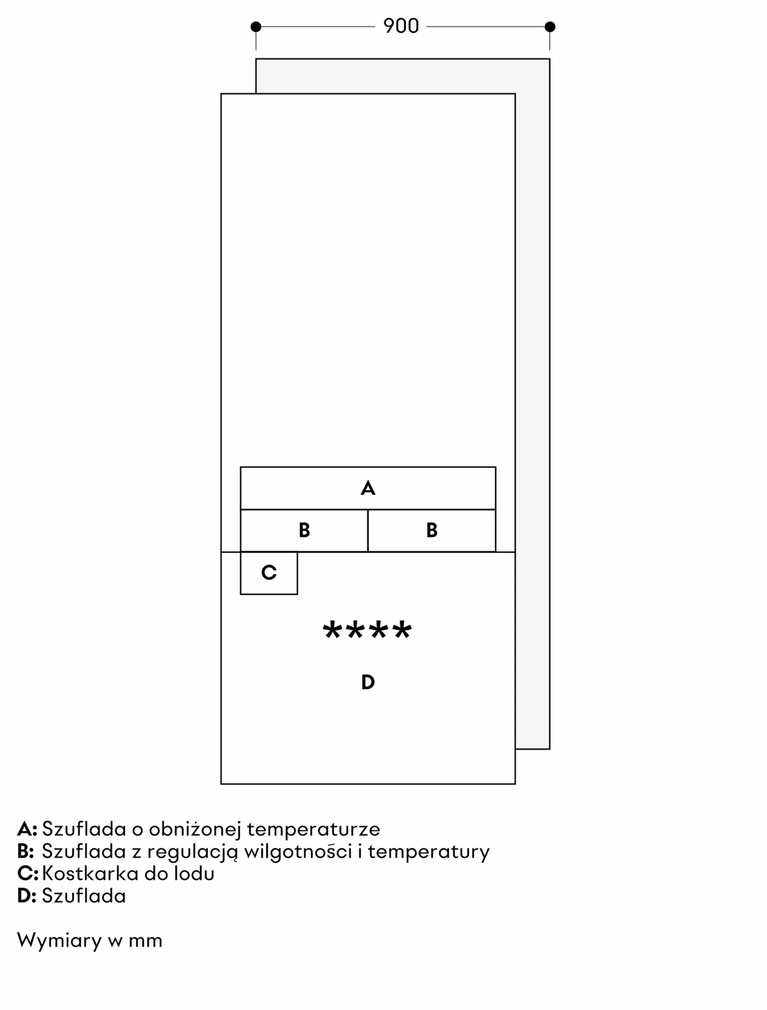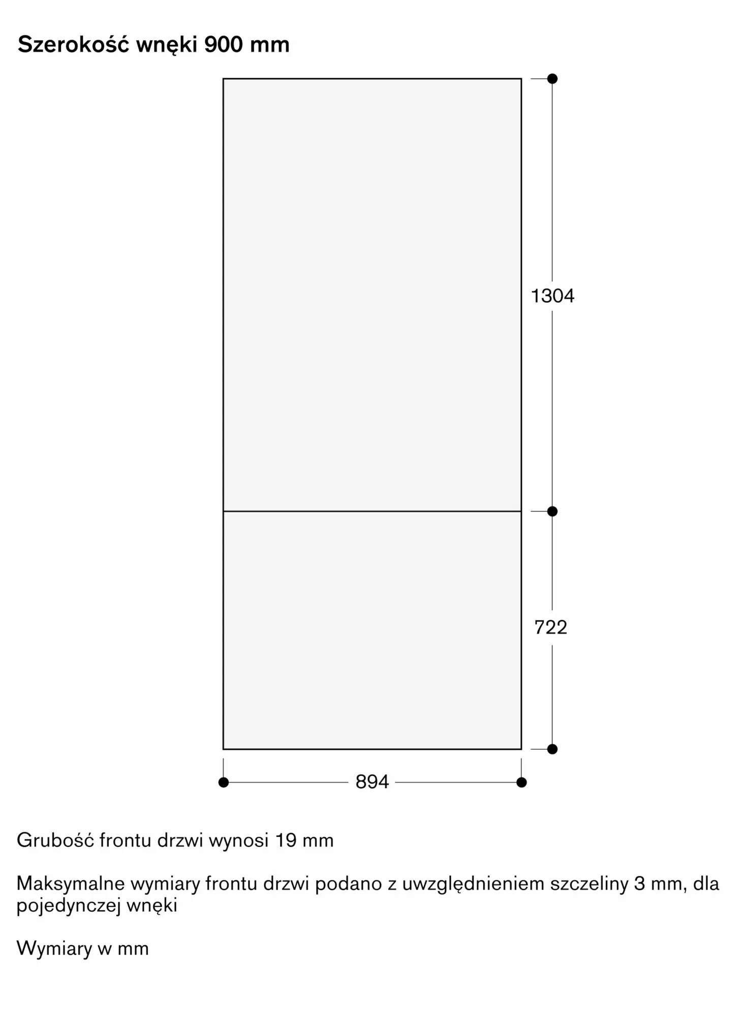 Maksymalna waga panelu drzwiowego: Drzwi: 50 kg. Szuflada: 14 kg.
