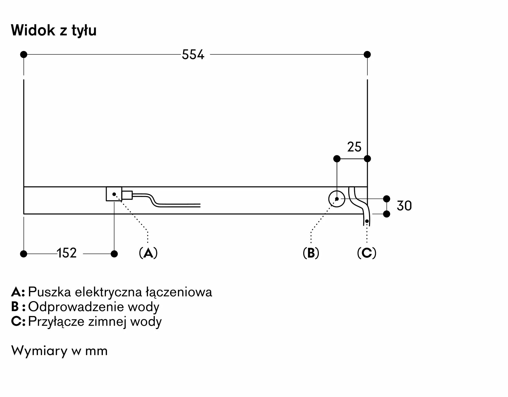 Przyłącze wody dla węża dopływowego musi być zawsze dostępne i nie może znajdować się bezpośrednio za urządzeniem.