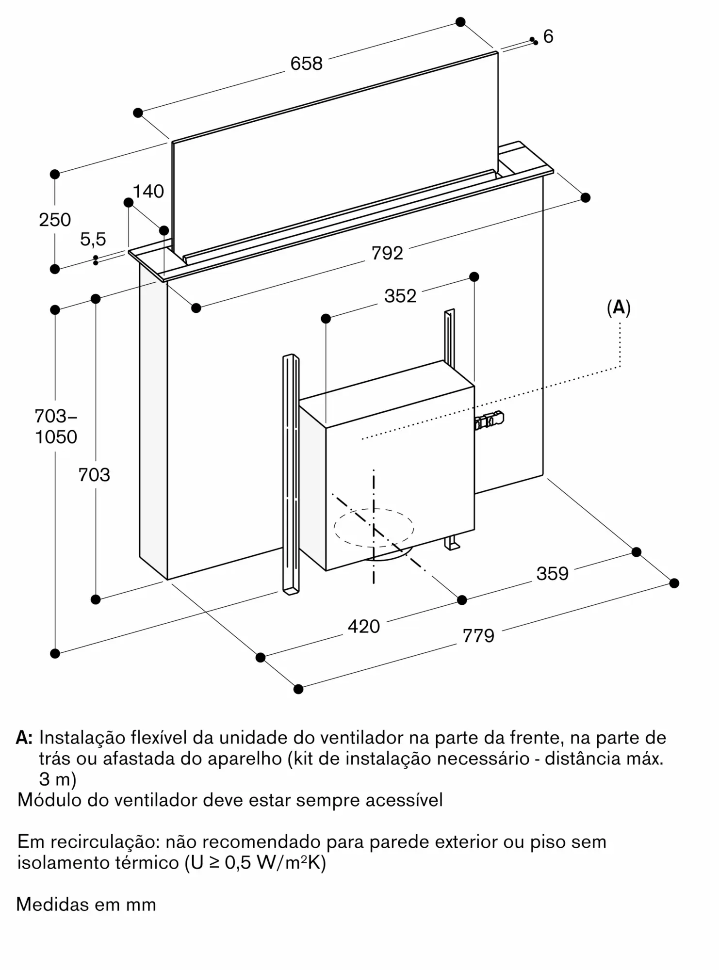 Para um desempenho ideal na recirculação de ar, recomendamos uma área de superfície de saída de pelo menos 440 cm².