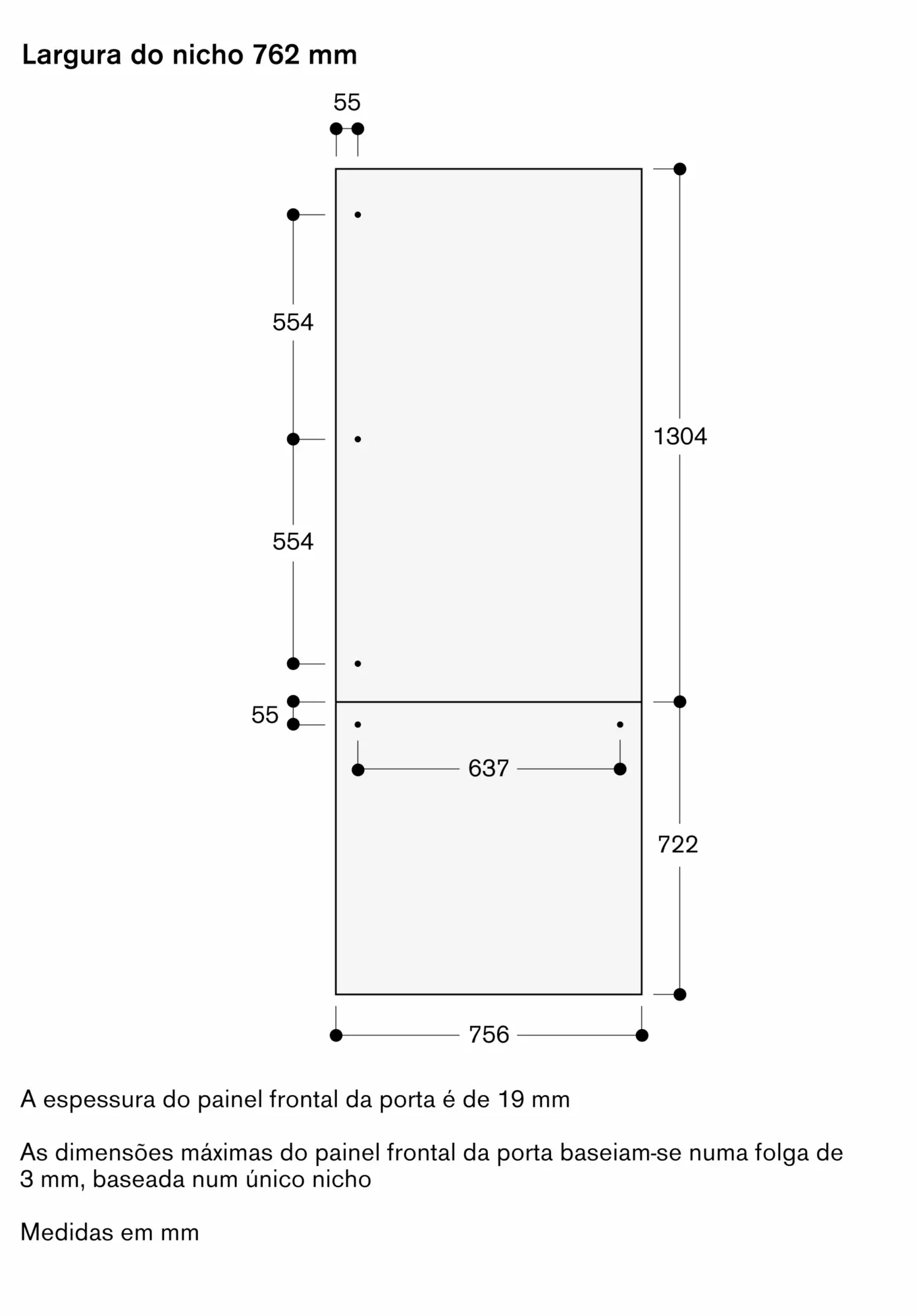 Posicionamento flexível dos suportes das prateleiras das portas através de sistema de calhas ocultas.